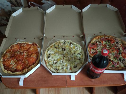 - Бонус! При покупке 3-х пицц 1 л кока-колы в подарок!