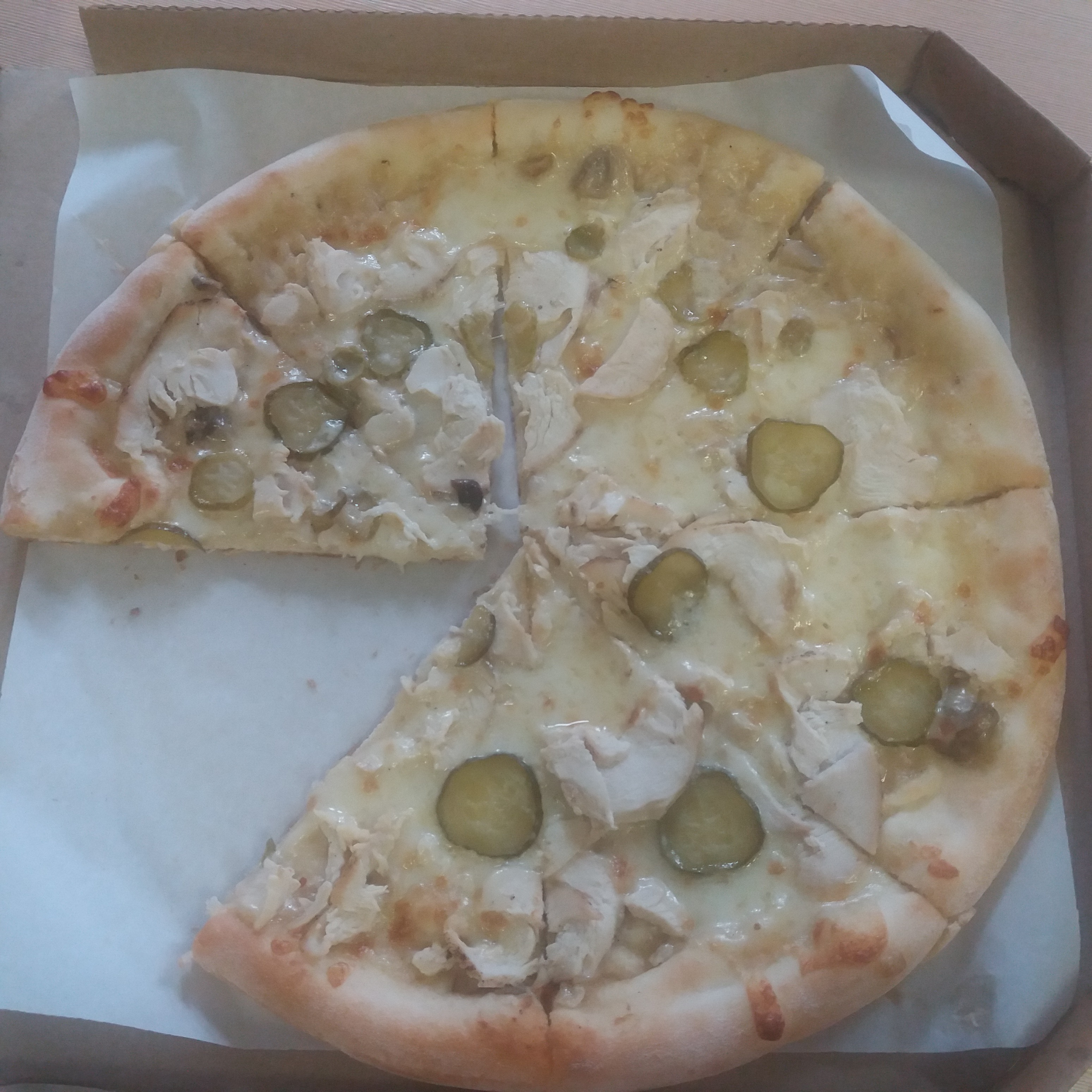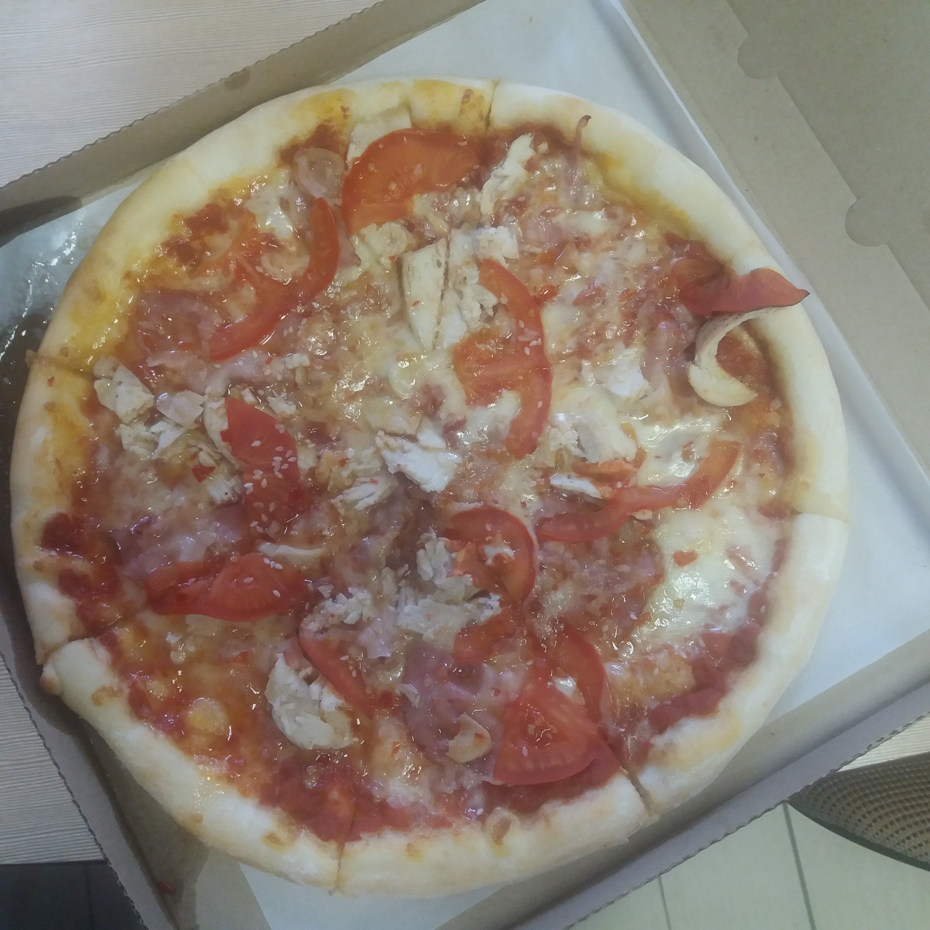 Заказывали комплекс "Премиум" , привезли по времени впритык, но это не так уж страшно, как сами пиццы, я таких не вкусных и ужасных ещё не видела и не ела, еле теплые, одна вообще мокрая и наполовину прилипшая к коробке была, фото не сделали,Ино я так понимаю что у них это впорядке вещей, судя по предыдущему отзыву, плюс спустя пару часов, все четверо отравились, даздравствует "беленький",благо все обошлось и чувствуем себя теперь впорядке, поэтому не рекомендую данную контору, если вам дорого ваше здоровье (понимаю,что эта не здоровая пища, но чтобы настолько-это черезчур)