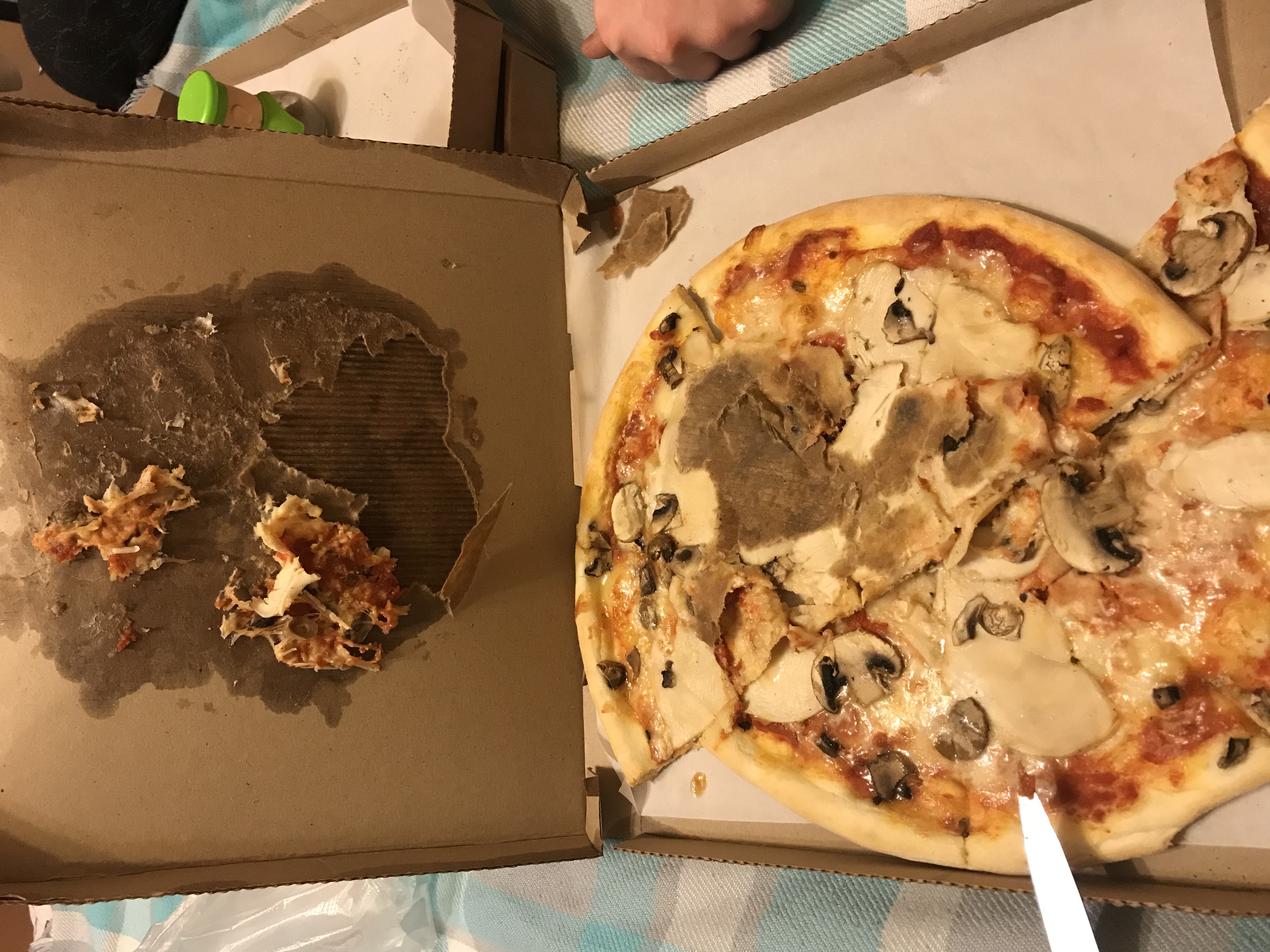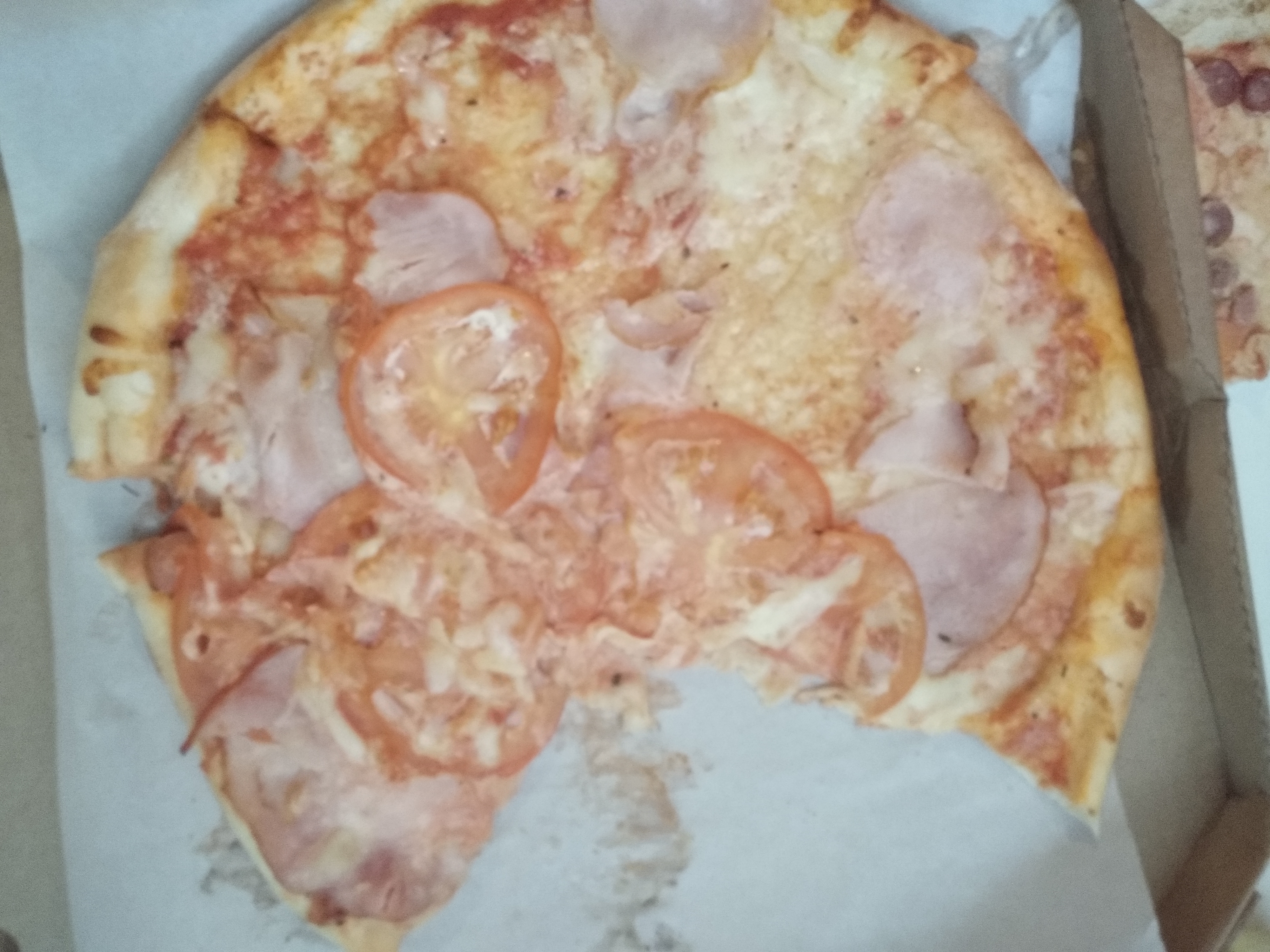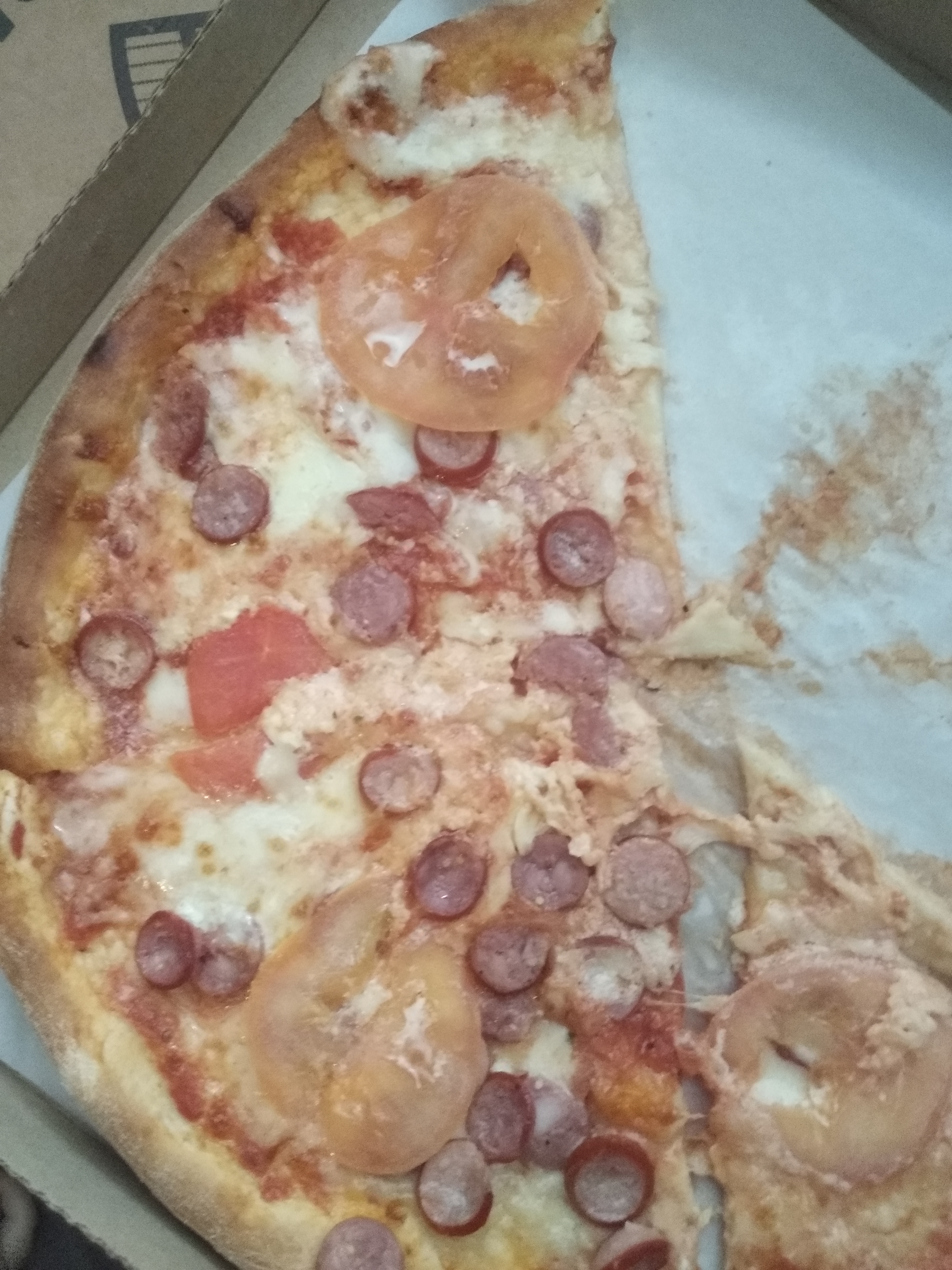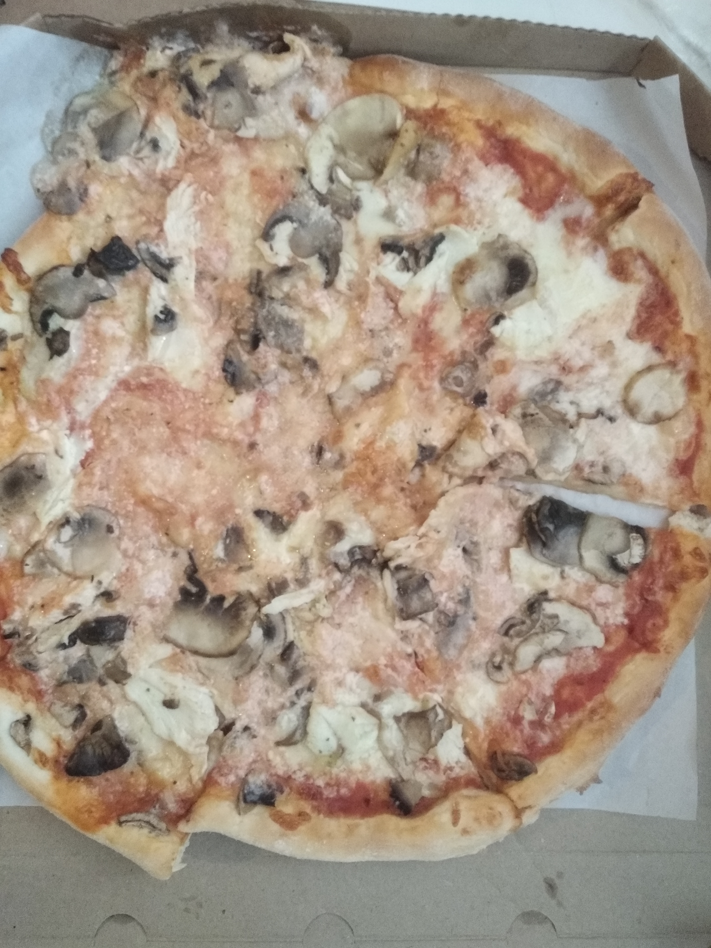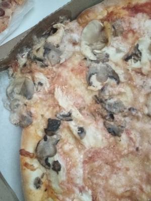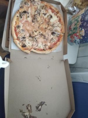 Вот такую красоту мы сегодня получили. Ранее заказывали пиццу/суши. Никаких вопросов не было. Сегодня просто день испорчен. Заказывали комплекс. Три пиццы. Это ужас. На фото видно. Перед оплатой не посмотрели. А зря. Был бы отказ. Пицца с грибами и на коробке, и за коробкой. Один кусок выдвинут, хотя пицца не разрезана. 2 куска только выделены. Пицца с ветчиной по виду треш. Начинка в одном месте вся практически. Пицца с колбасками достаточно равномерна. Один кусочек только без начинки практически. Все пиццы не разрезаны. Только частично. В руку берешь и все разваливается. Вкус сегодня тоже не впечатлил. Очень жаль, что сегодня нам так не повезло.
