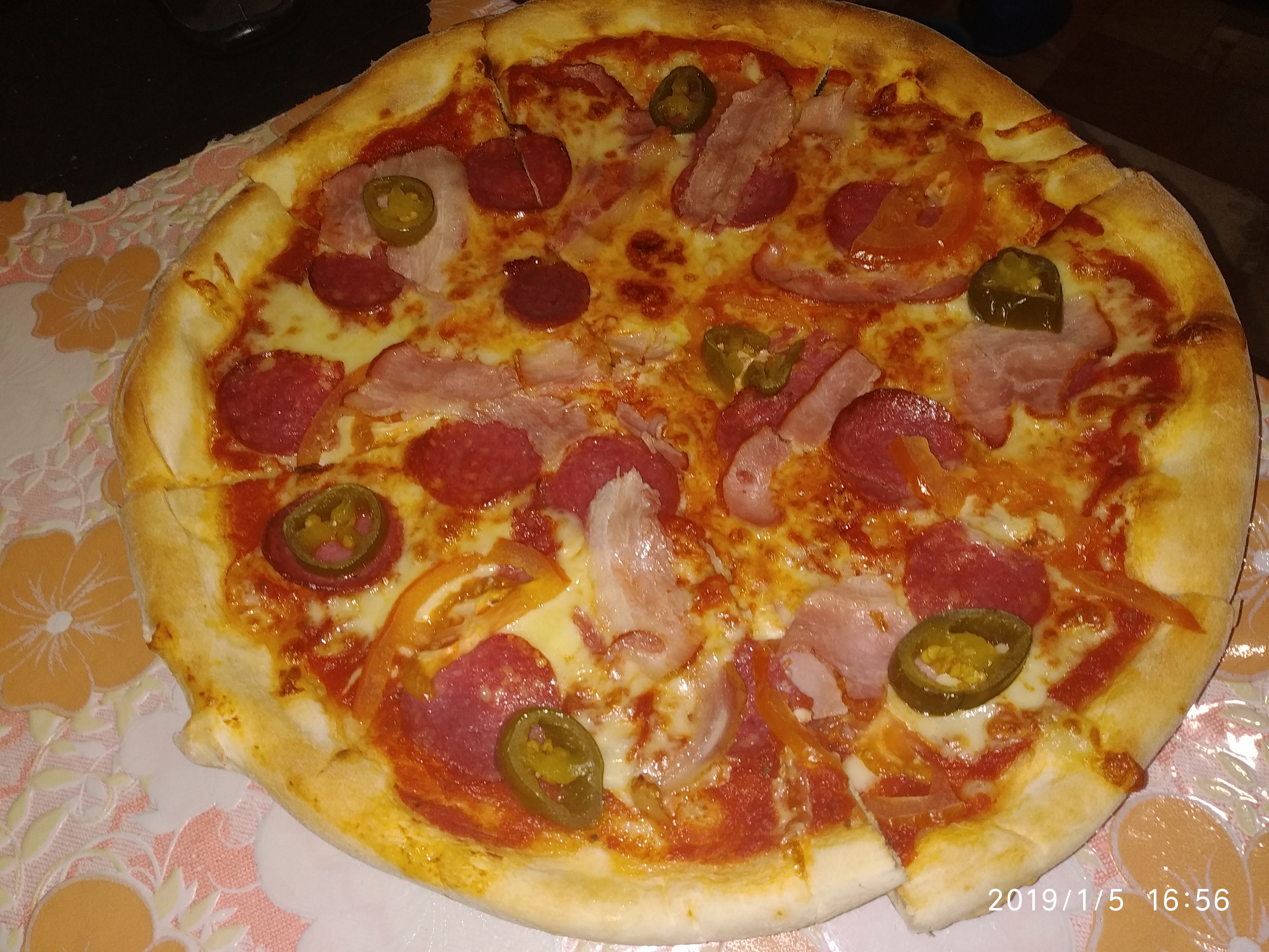 Заказали набор 5 пицц, и еще одну в придачу. Заказывал в воскресенье на час дня понедельника. Изначально хочу отметить что девочка на телефоне весьма компетентна, сразу видно что владела ситуацией. Пиццы доставили вовремя. Были настолько горячие что нижние аж жаром руки обдували))