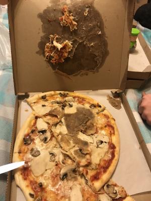 Заказывали пицца-комплекс “Slivki”. Привезли в указанное время, но пиццы были чуть тёплые, почти безвкусные, одна прилипла к крышке коробки и была такое чувство, что приготовлена задолго до того, как ее привезли.  Заказывали по промокоду, так что не так обидно.