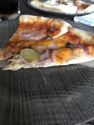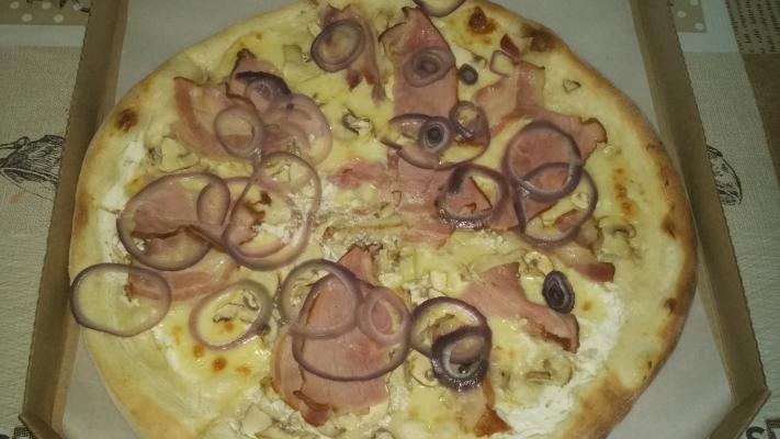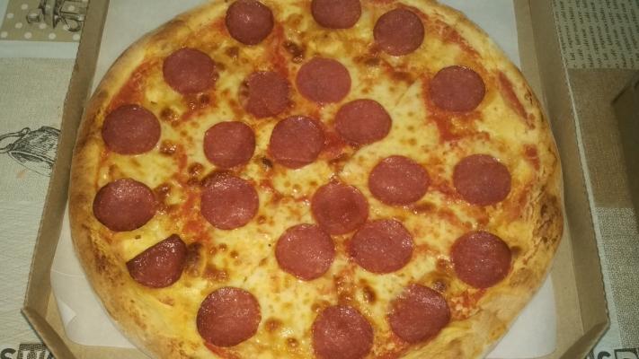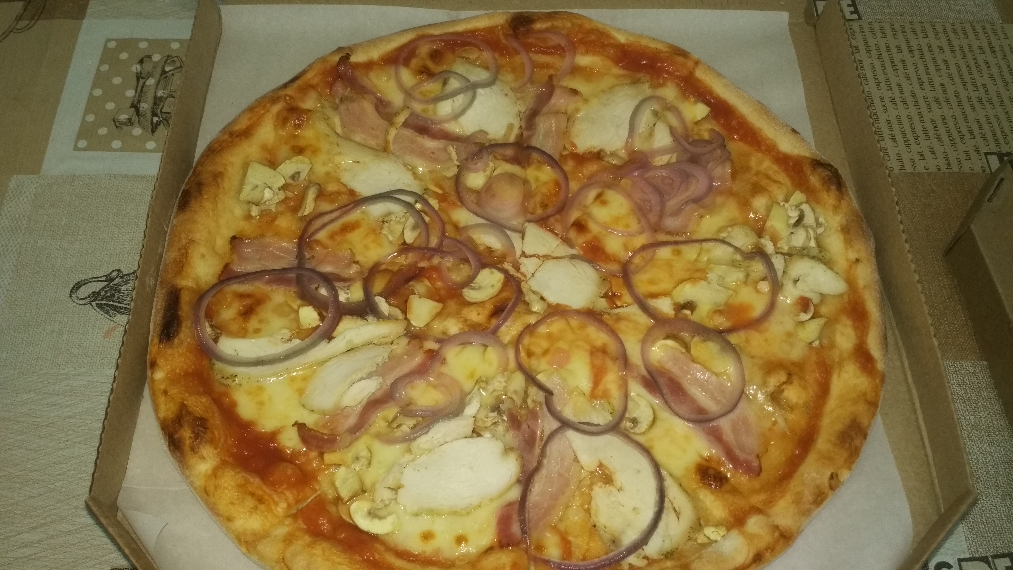 В первый раз пицца была на 3 (особенно порадовало отсутствие теста в центре пиццы), во второй раз на 2- (вкус ужасен, начинки мало) Это был последний заказ пиццы здесь.