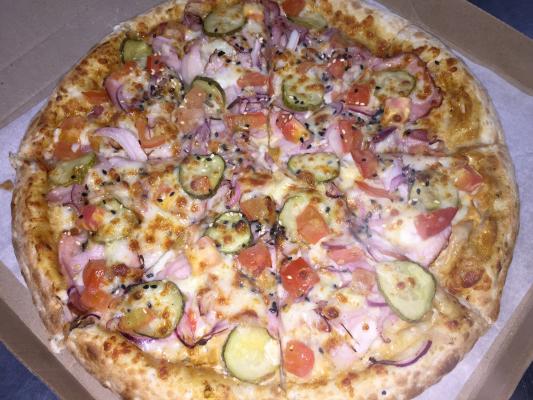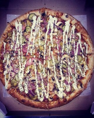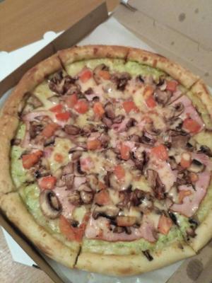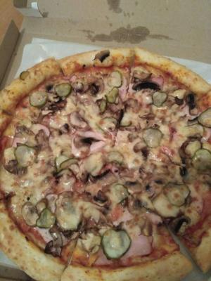 Мы под большим впечатлением.Пицца приехала быстро, а самое главное горячая.Деревенская и Грибная - это нечто!(извиняюсь за половинчатое фото,но она так соблазнительно пахла)