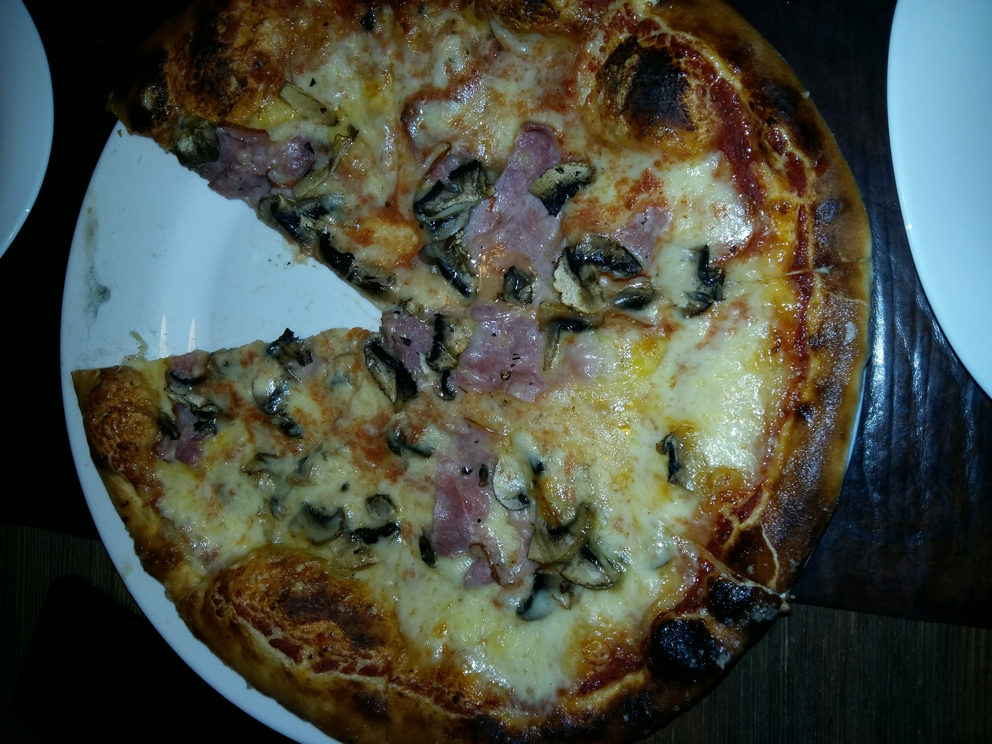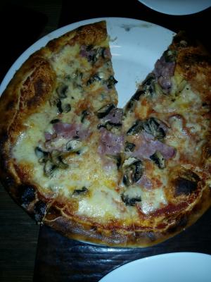 Пицца "Capricese" (Грудинка к/в, шампиньоны свежие, сыр моцарелла - 480 г):
