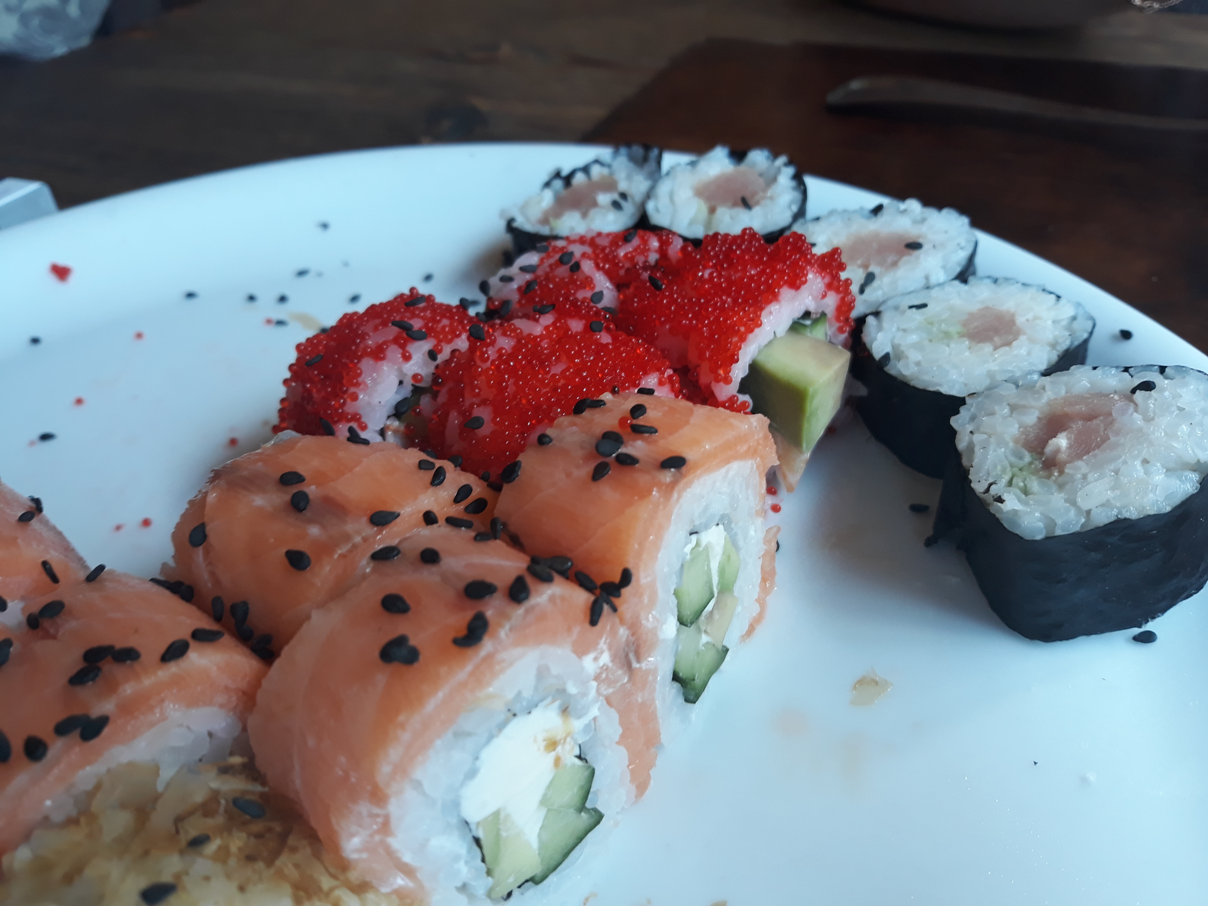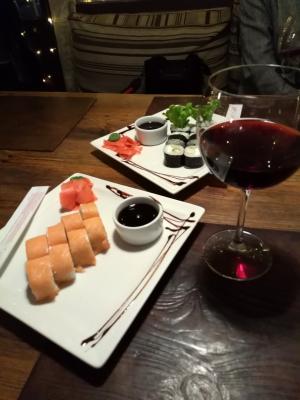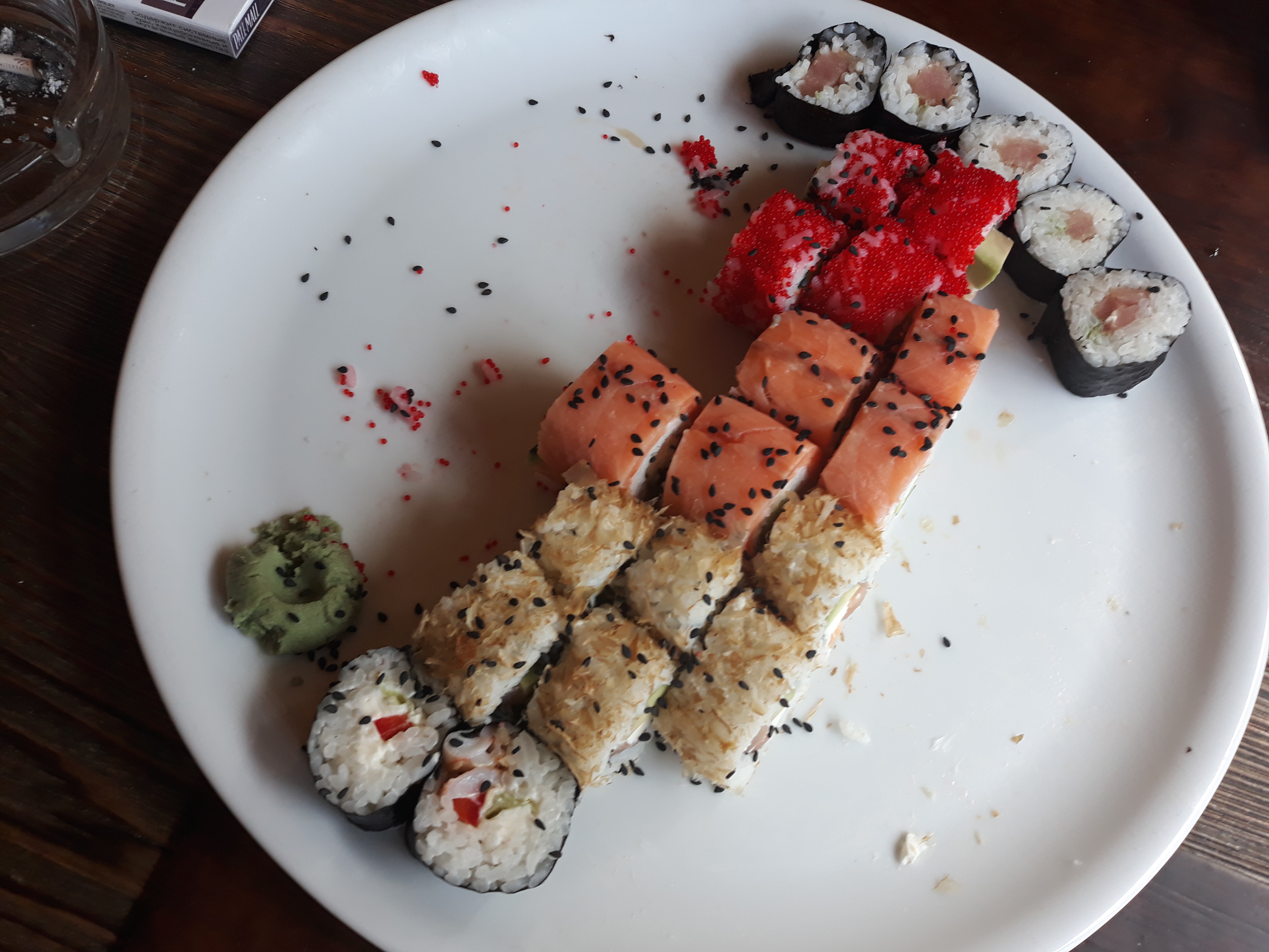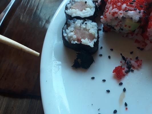 Еще заказали суши. Суши у них не самое лучшее, что они готовят. По итогу: суши скручены плохо, разваливаются когда пытаешься взять, на бонито очкнь мало стружки тунца, а так на вкус нормально.