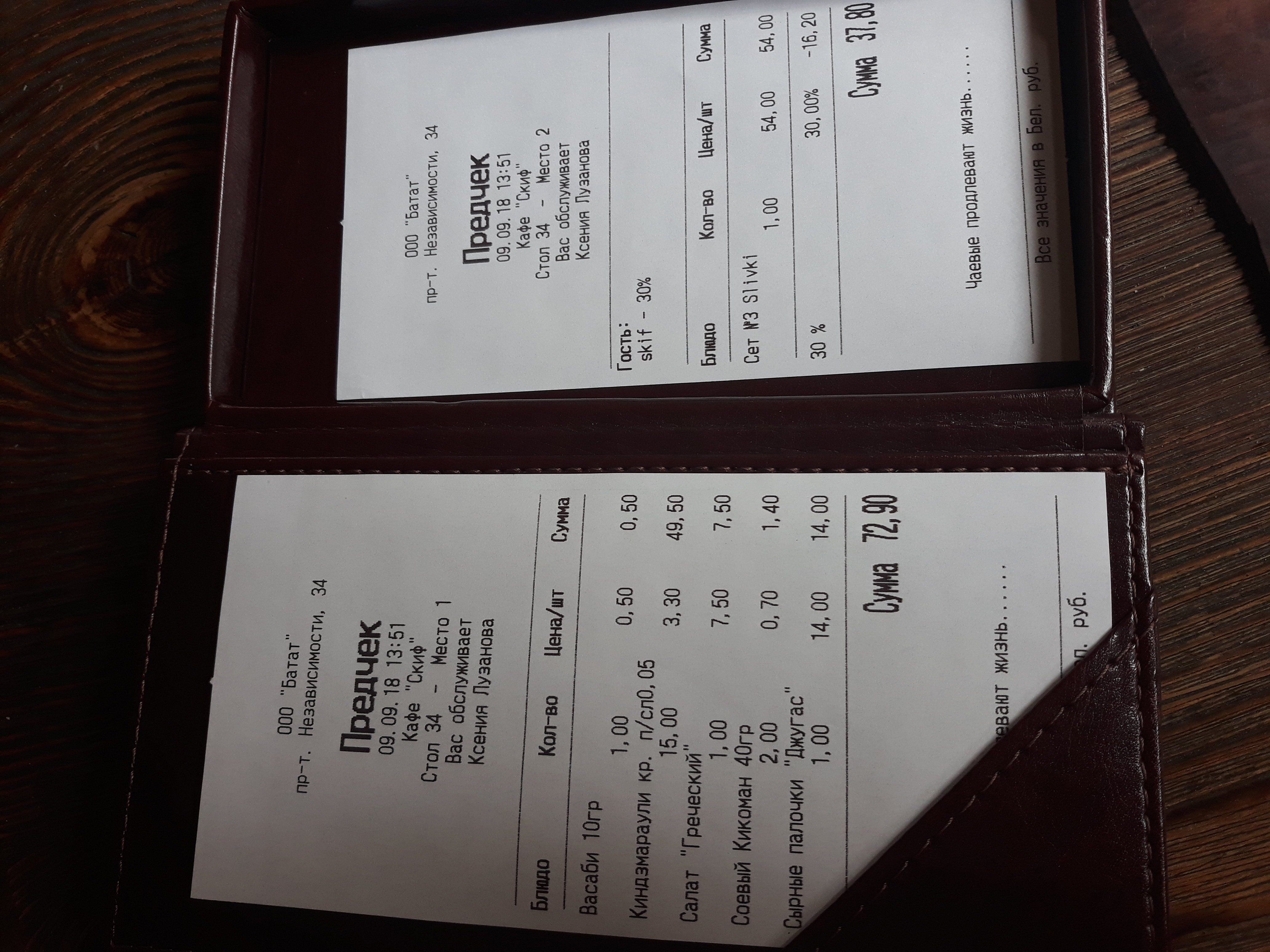 В Скиф ходим очень часто, все нравится, интерьер, кухня. Последние несколько месяцев начали приобретать коды на некоторые блюда и вот, что я скажу.....Разочаровал несколько.....На днях заказала по сливкам суши Филадельфия, принесли......Я их и ранее заказывала, без акции, так вот-была красивая подача, украшено блюдо, имбирь/васаби, в общем, супер. А по сливкам принесли, вроде как и суши, вроде как и остальное есть, но как-то так выложено-типа вот, а что вы еще хотели по такой цене......В общем, если уж делаете акцию-проводите ее достойно!