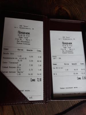 На вопрос официанту, почему суши настолько некачественные, девушка только твердила, что кафе не специализируется на суши. Видимо, на салатах и сырных палочках оно тоже не специализируется, потому что греческий салат был не заправлен совсем, бальзамик на борту тарелки для украшения был всей предложенной заправкой. А сырные палочки даже близко не были из заявленного сыра Джугас, вместо него был обычный сулугуни.