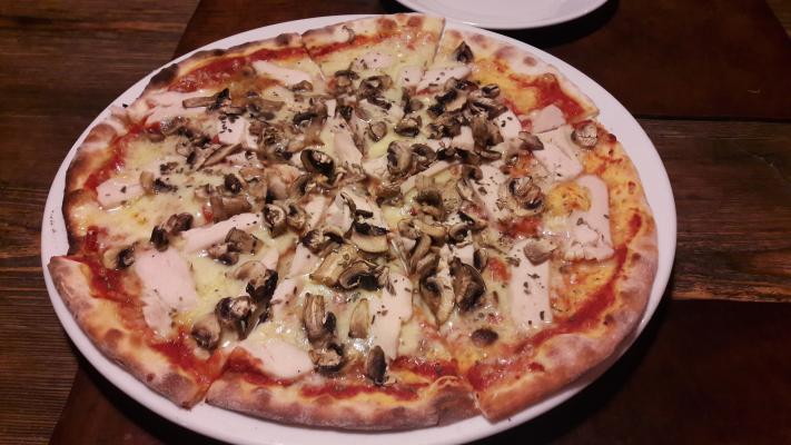 Пицца "По-милански" (Филе куриное, шампиньоны свежие, сыр моцарелла - 460 г):