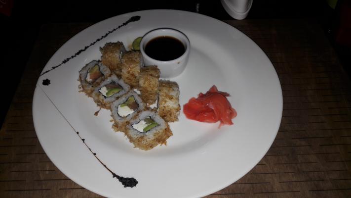 1. Ролл "Бонито" (лосось, авокадо, сыр Креметте, стружка тунца, рис, нори ) 195 г