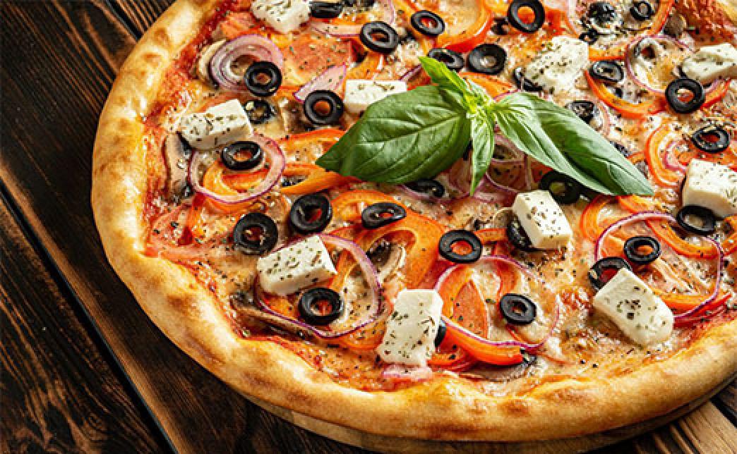 - "Капричиоза" 550-600 г (моцарелла, ветчина, шампиньоны, перец болгарский, соус для пиццы)
