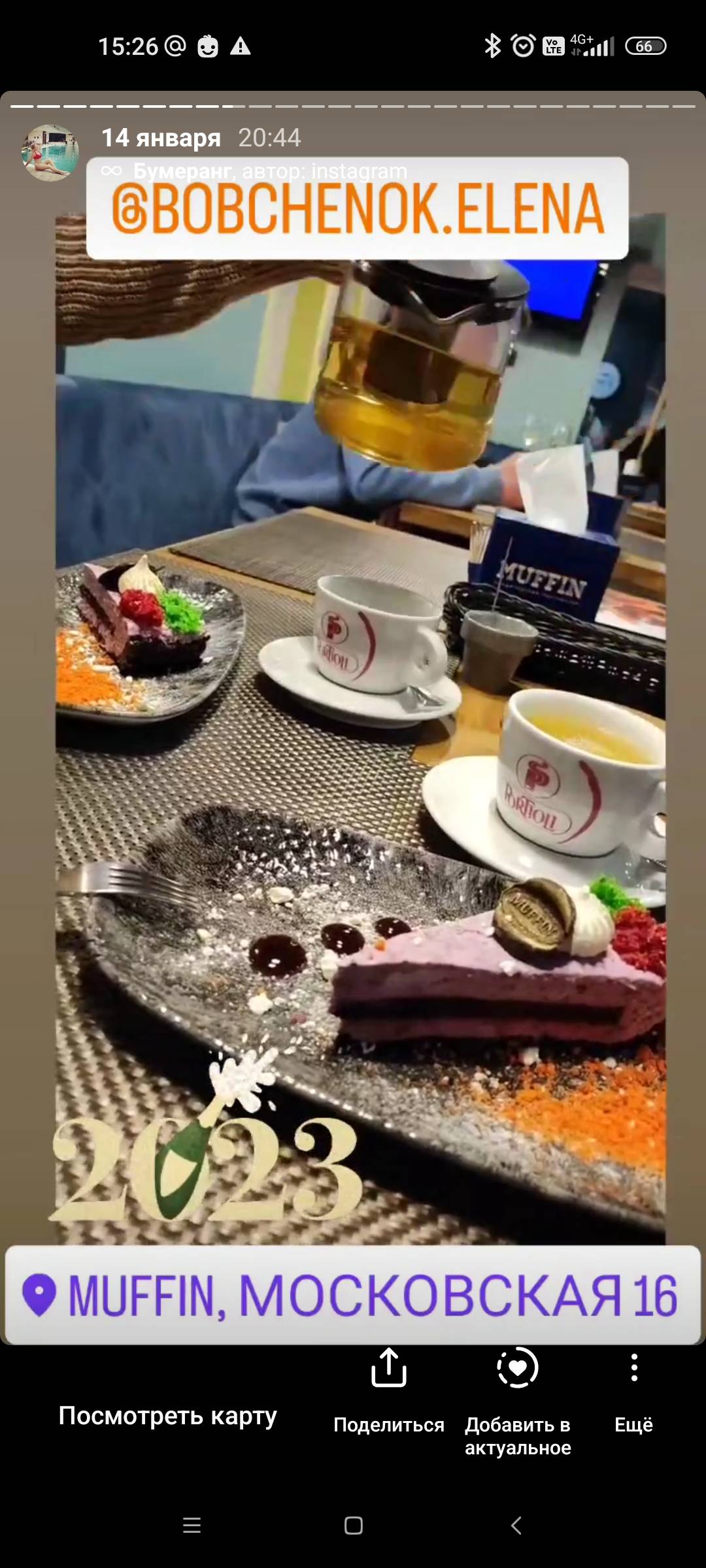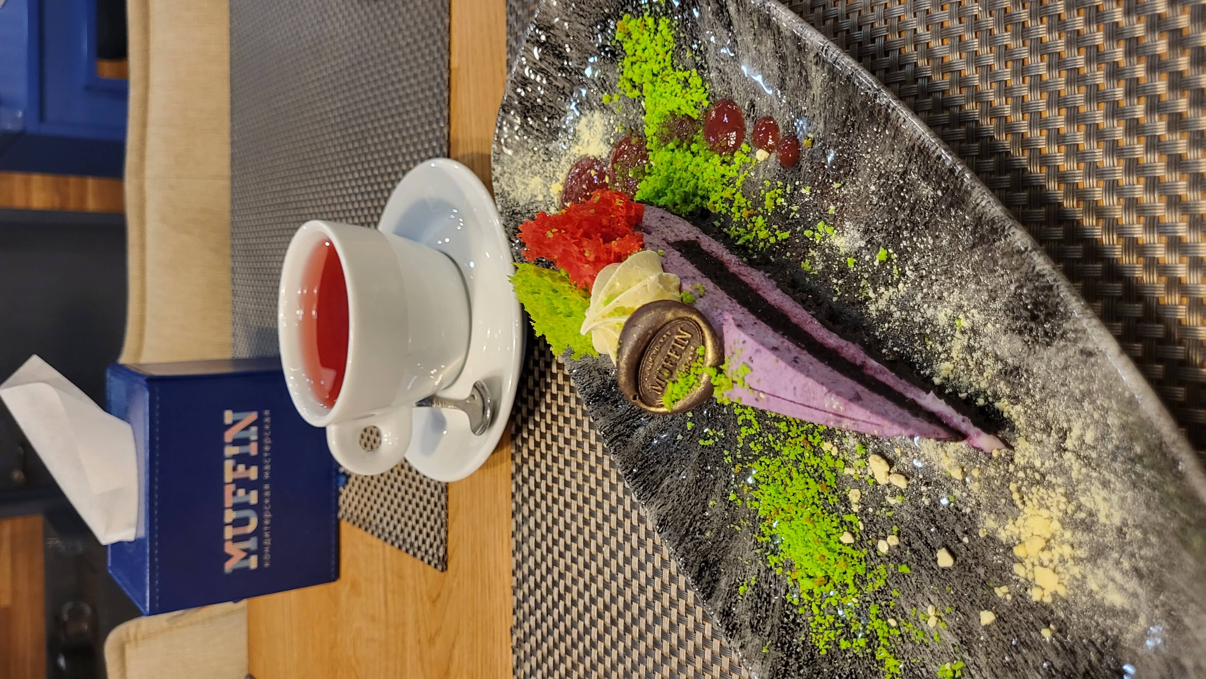Покупала сет "Два чизкейка с голубикой+парный чай" 12 апреля за 10 рублей. Очень вкусные и свежие чизкейки (их можно было купить только по сливочному купону) и чай, приятное и быстрое обслуживание, малое количество людей (посещала кафе около 18.30 в будний день). Я ооочень спешила и у меня было мало времени, однако девушка-официант все сделала и принесла максимально быстро. Кафе-ресторан "Muffin" рекомендую и вернусь сюда снова, хоть и купоны, и сеты подорожали. Спасибо!