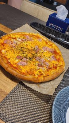 Отличное обслуживание . Пицца вкусная, но она вообще не выглядит как на картинке. Такой вот обман потребителя ( бекона практически нет ). Десерт не понравился, но это у всех сугубо индивидуально. Подача супер . Милая девушка официант . Хотелось оставить на чай, но ни копейки наличных не было ;(