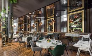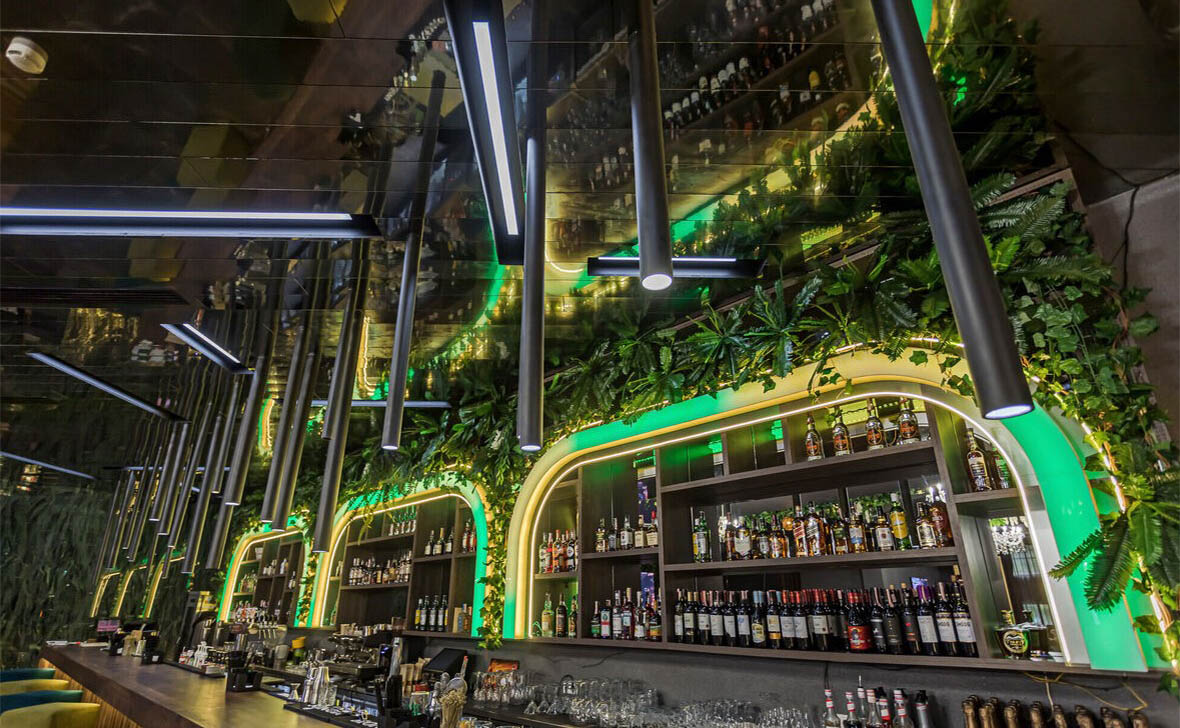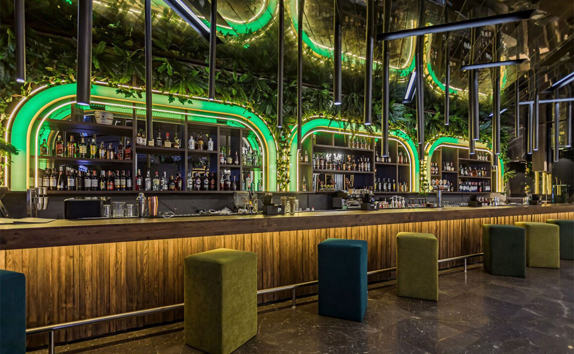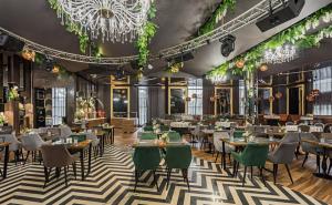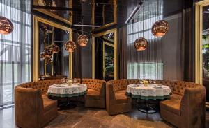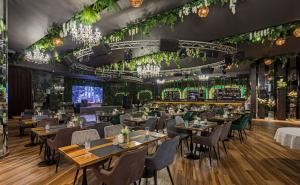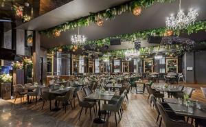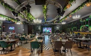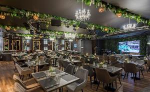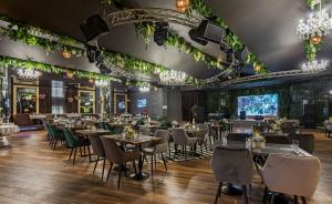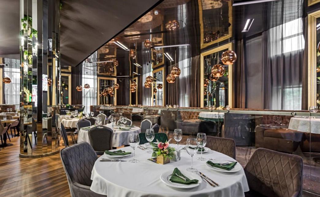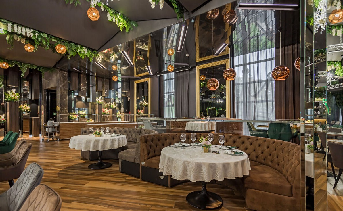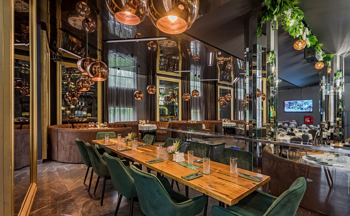 Просторный стильный зал ресторана вмещает 150 гостей и располагает двумя VIP-зонами для желающих уединиться и провести приятный вечер в узком кругу. Современный дизайн и функциональность размещения столиков позволяет здесь устроить как дружескую вечеринку или отметить торжество в компании друзей и близких, так и провести романтическое свидание.