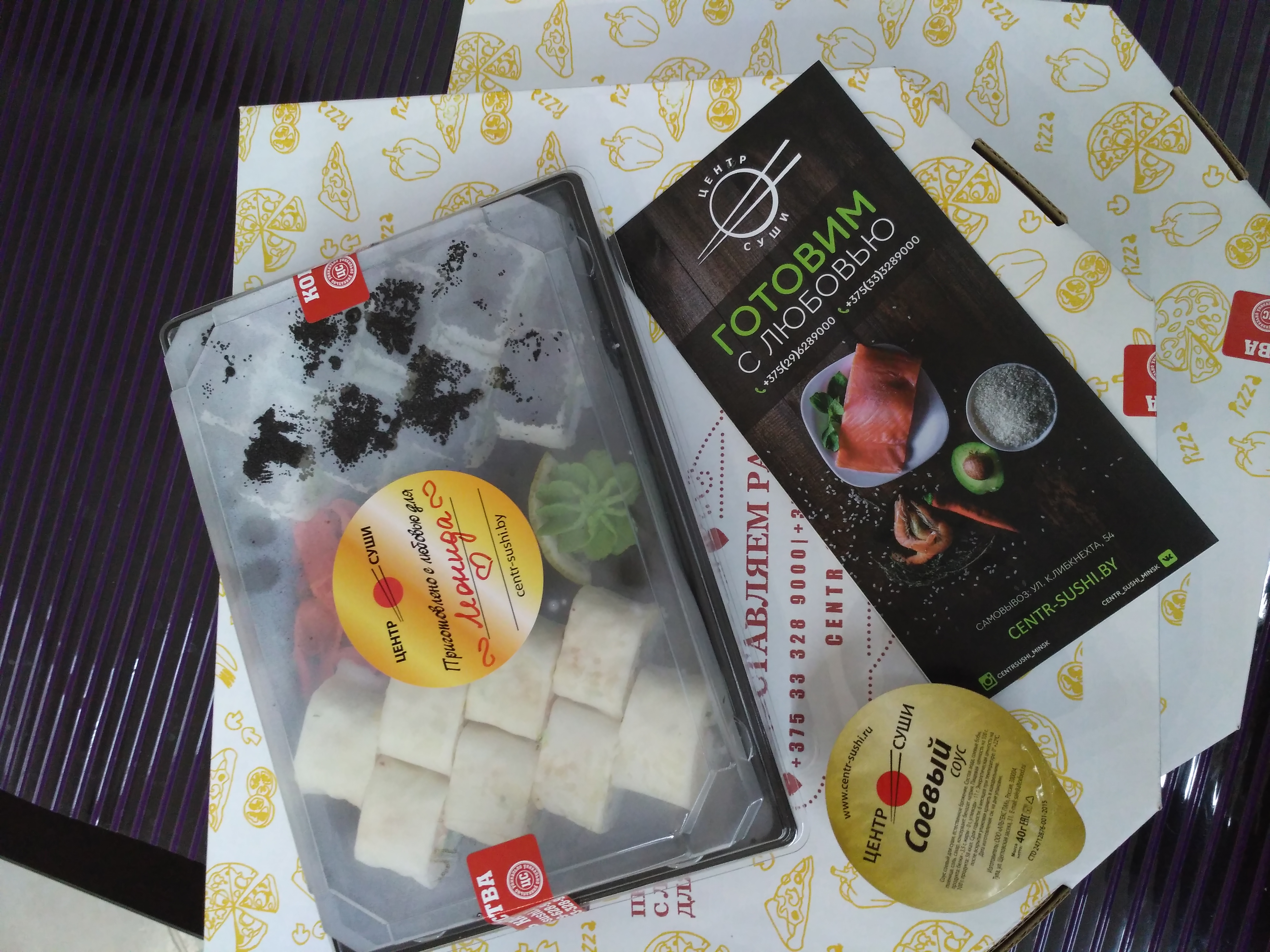 Добрый день. Приносим свои извинения за случившийся инцидент. Виновные наказаны. Свяжитесь с нашим администратором для предоставления Вам комплимента от Центр Суши. Спасибо большое за отзыв🙂