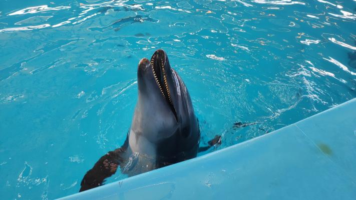 Огромное спасибо работникам дельфинария за радость в глазах ребенка и море незабываемых впечатлений! Покупали плавание с дельфинами ребенку на День рождения(7 лет). Очень довольны, ребенок рад! Спасибо инструктору, сопровождающему ребенка во время плавания, за терпение, доброту и хорошее отношение! На память осталась картина от дельфинов и незабываемые впечатления! Очень-очень понравилось!!!