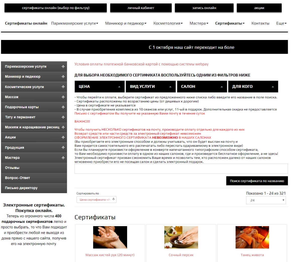 - Полное описание и стоимость подарочных сертификатов смотрите ниже