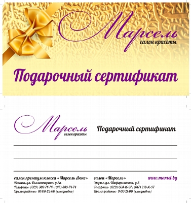 - Также в этом салоне вы можете приобрести подарочные сертификаты со скидкой на: