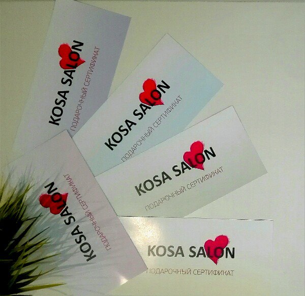 - подарочный сертификат с услугами на выбор "Кosa two":