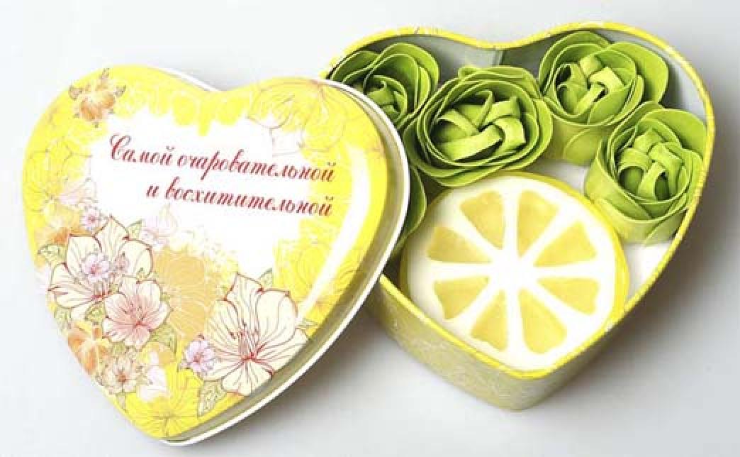 - набор «Самой очаровательной и восхитительной» (мыло "розы" (5 шт) + мыло "лимон", 13*12)