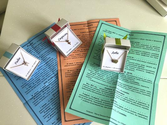 - ювелирное украшение с цепочкой для каждого знака зодиака упакованное в отдельную коробочку (длина цепочки 41+5 см)