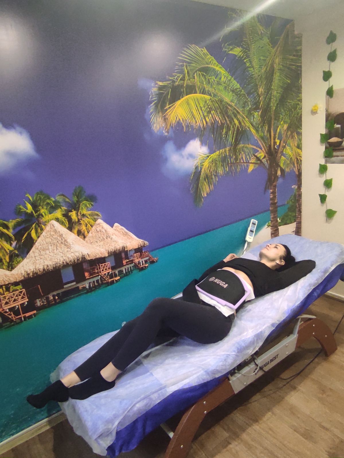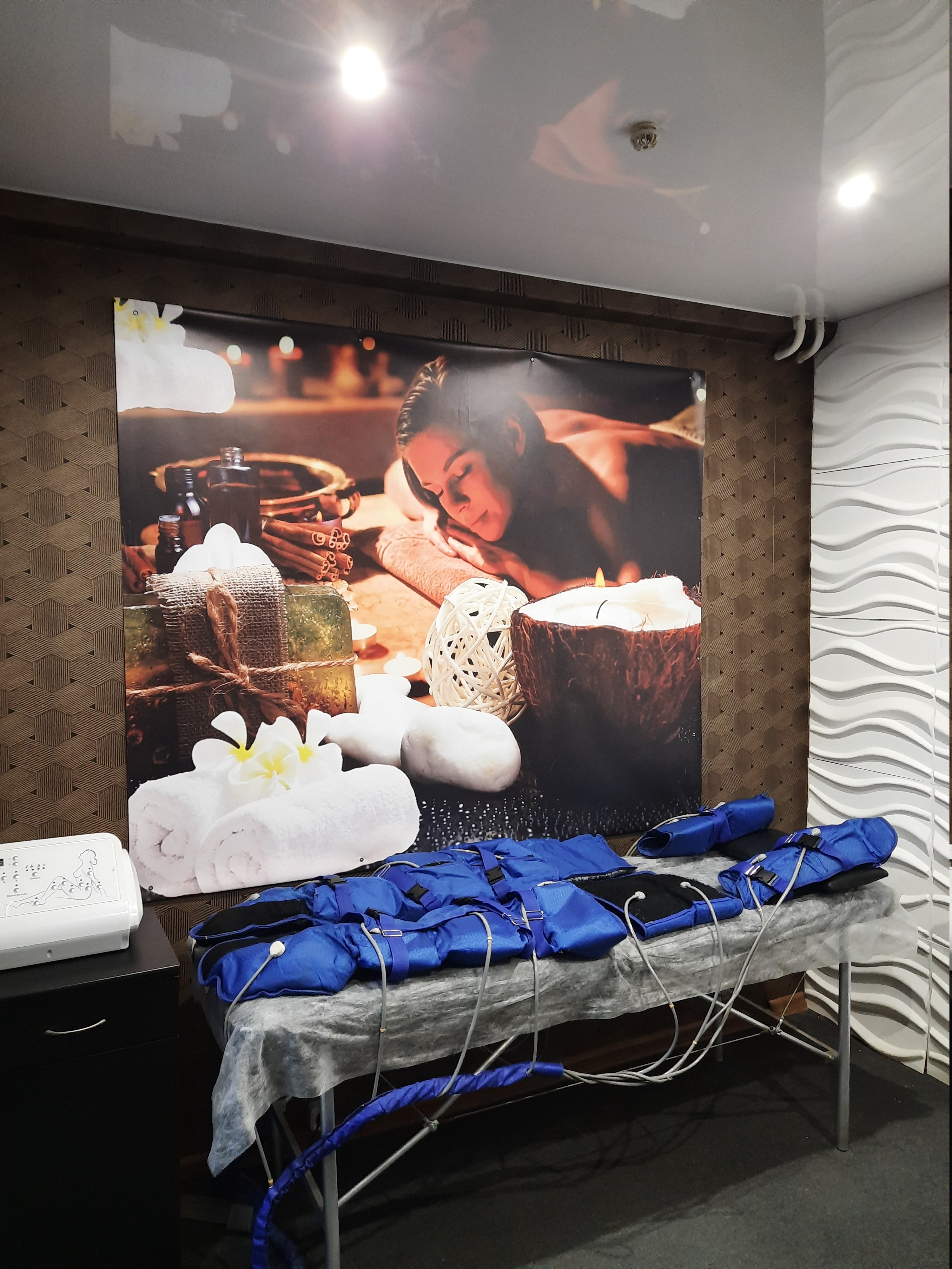 3. Программа "Максимальное расслабление": роликовый антицеллюлитный тренажер + расслабляющий компрессионный лимфодренажный массаж + релакс-сауна в инфракрасном одеяле + расслабляющий массаж спины на аппарате "Nuga Best" + массаж ног + аппаратный массаж глаз + чаепитие.