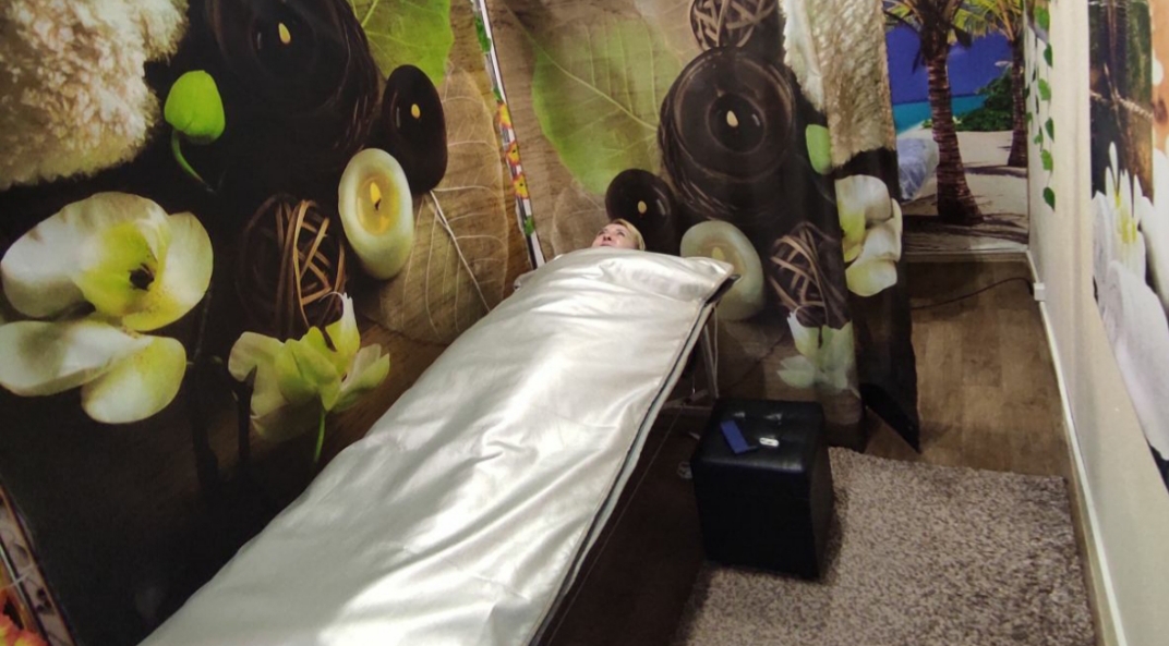 - сауна в инфракрасном одеяле. Продолжит наслаждаться благоухающими ароматами под спокойную и медленную музыку прекрасная леди в теплом инфракрасном одеяле, чтобы состав принес максимальную пользу, а мысли опьяняли от воспоминаний о своем дарителе