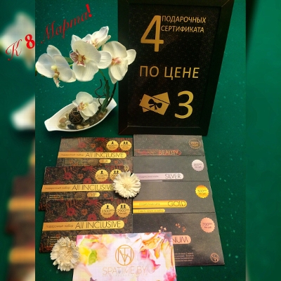- Возможность приобретения подарочных сертификатов на любую услугу (комплекс услуг) или сумму.