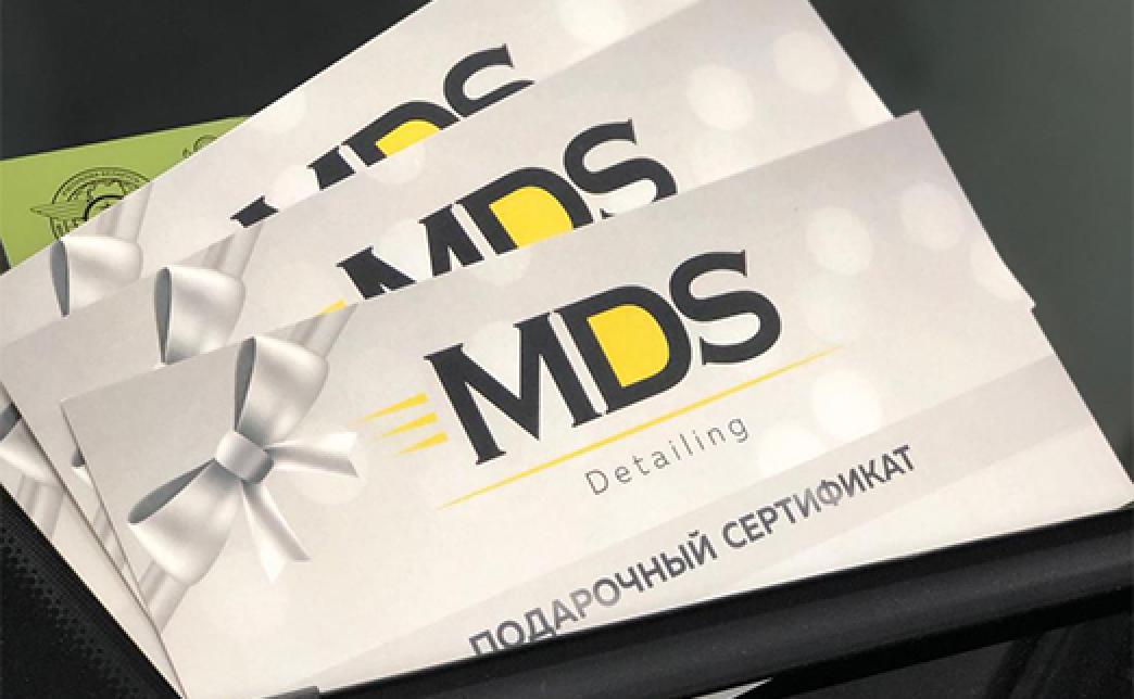 - Промокод даёт право на скидку до 50% на услуги в подарочном сертификате от детейлинг центра "MDS"