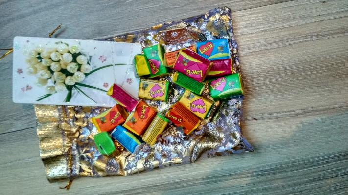 1. Корзинка праздничная "Love is ..." 20 шт. жеват. резинок ассорти. 2. Открытка - 1 шт. |