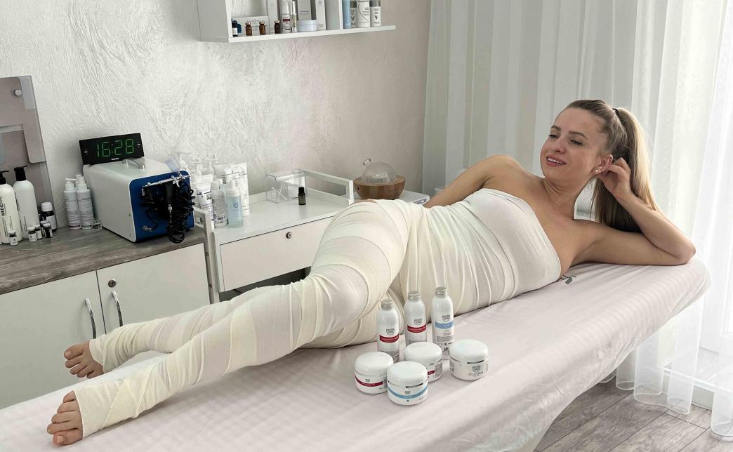 - снимаем бандажи, наносим специальные гели-корсеты - продукты, закрепляющие действие обертывания