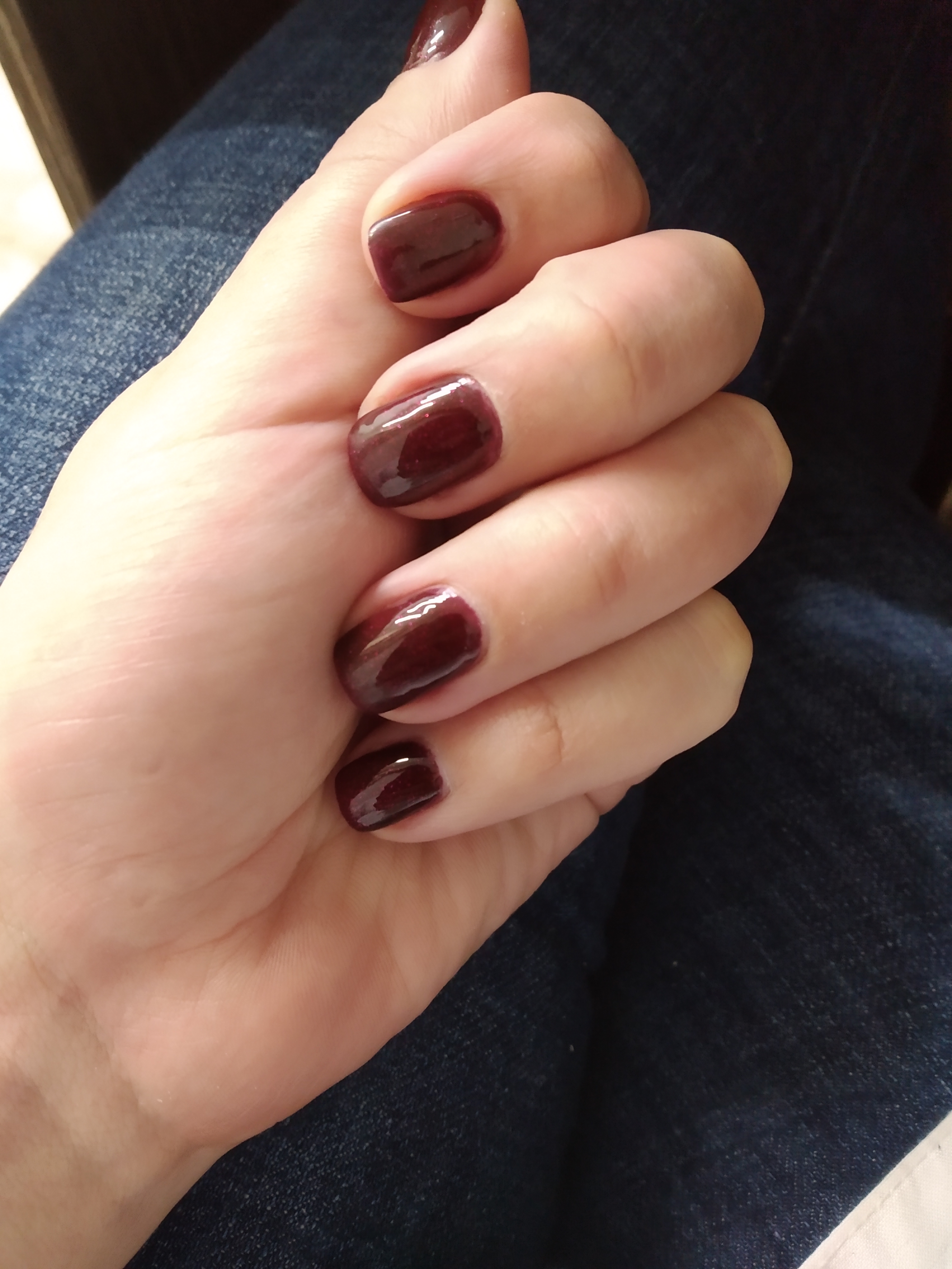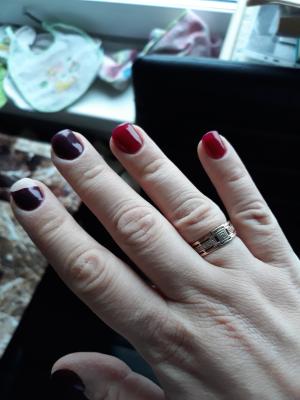 маникюр оказался ужасный. мастер молодец. сделала все хорошо,но...при выборе лака по палитре по факту его не оказалось. выбрала вариант номер два - та же ситуация. пришлось выбирать из баночек, лаки не первой свежести все. и вот мастер решил на втором слое подразвести лак растворителем и вот тут наверное произошло что -то плохое. из первой бутылочки растворитель закапал гелеобразной жидкостью, из второй то же самое .в итоге сделанный маникюр в 19-20 -не высох даже к 12 ночи, лак оставался липким, утром он естественно приобрел фактуру постельного белья, а ведь маникюр делался на мероприятие и переделывать его не было времени, пришлось покрыть бесцветным лаком в один слой для хоть какого-то спасения ситуации. не рекомендую делать у них обычное покрытие.