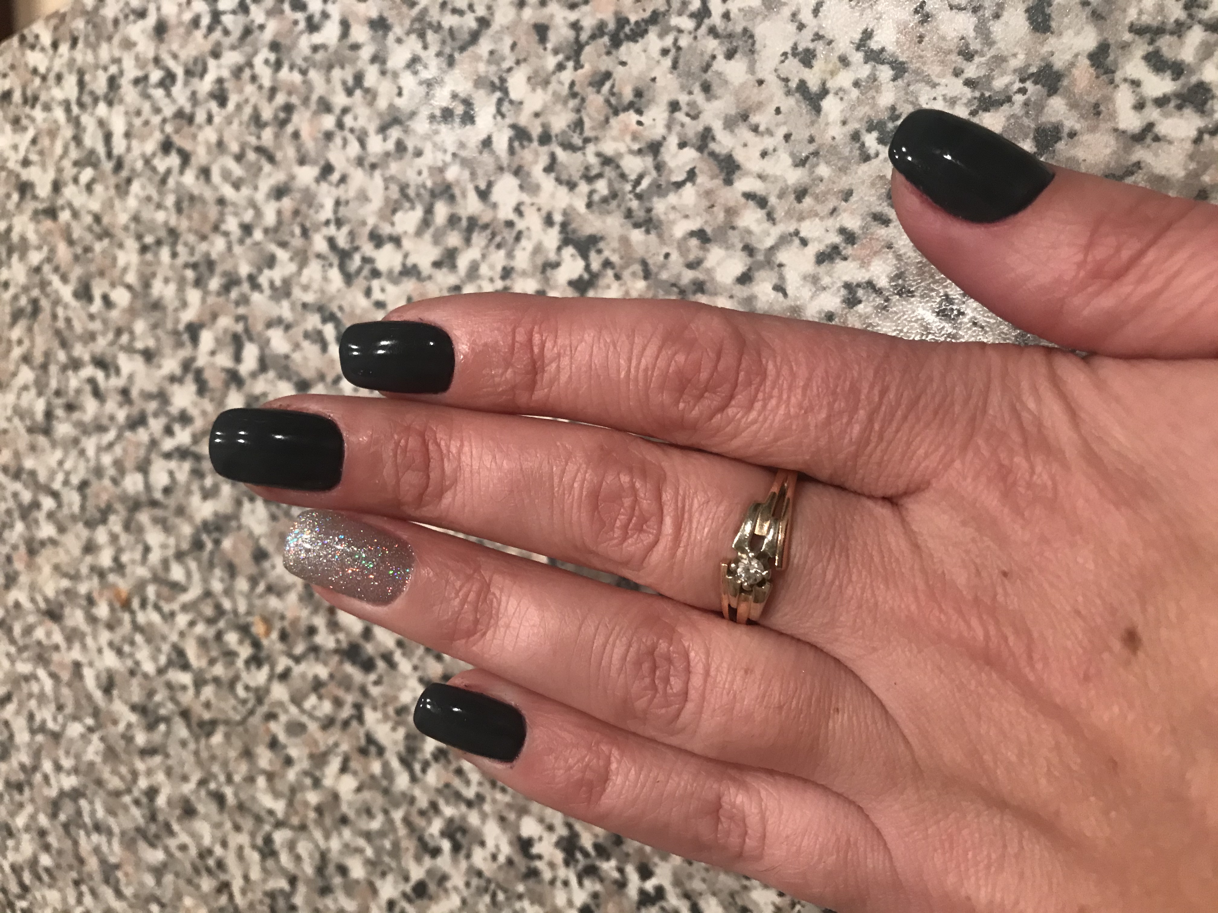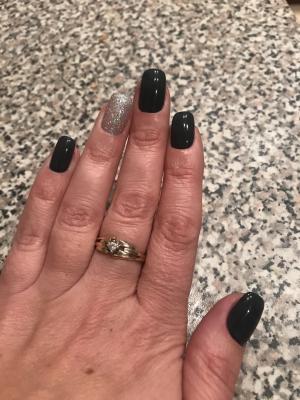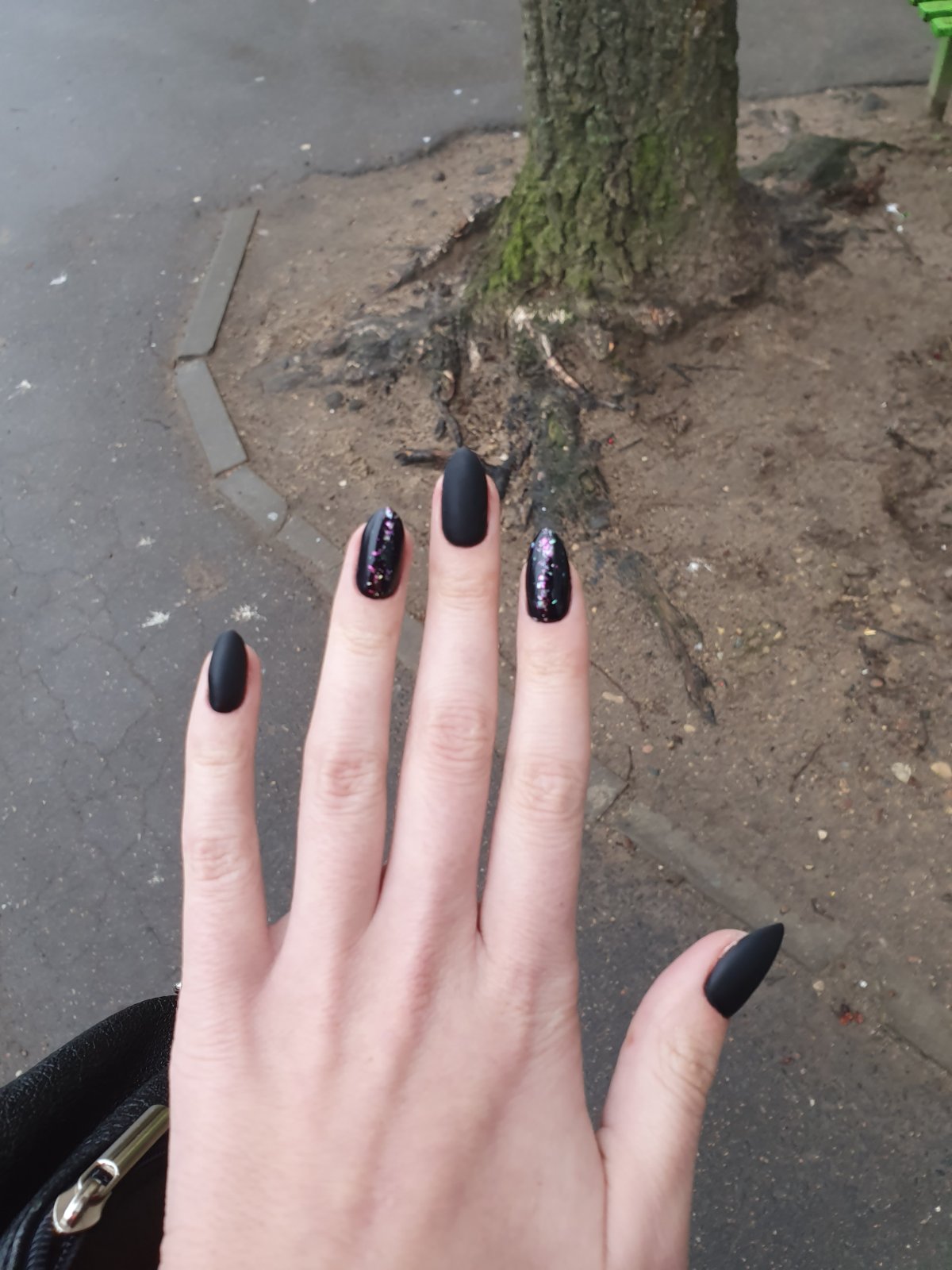 Один ноготь не докрашен. Под ногтями лак. У основания ногтя не ровно. Вся работа "на отвали". Больше там маникюр я точно делать не стану!