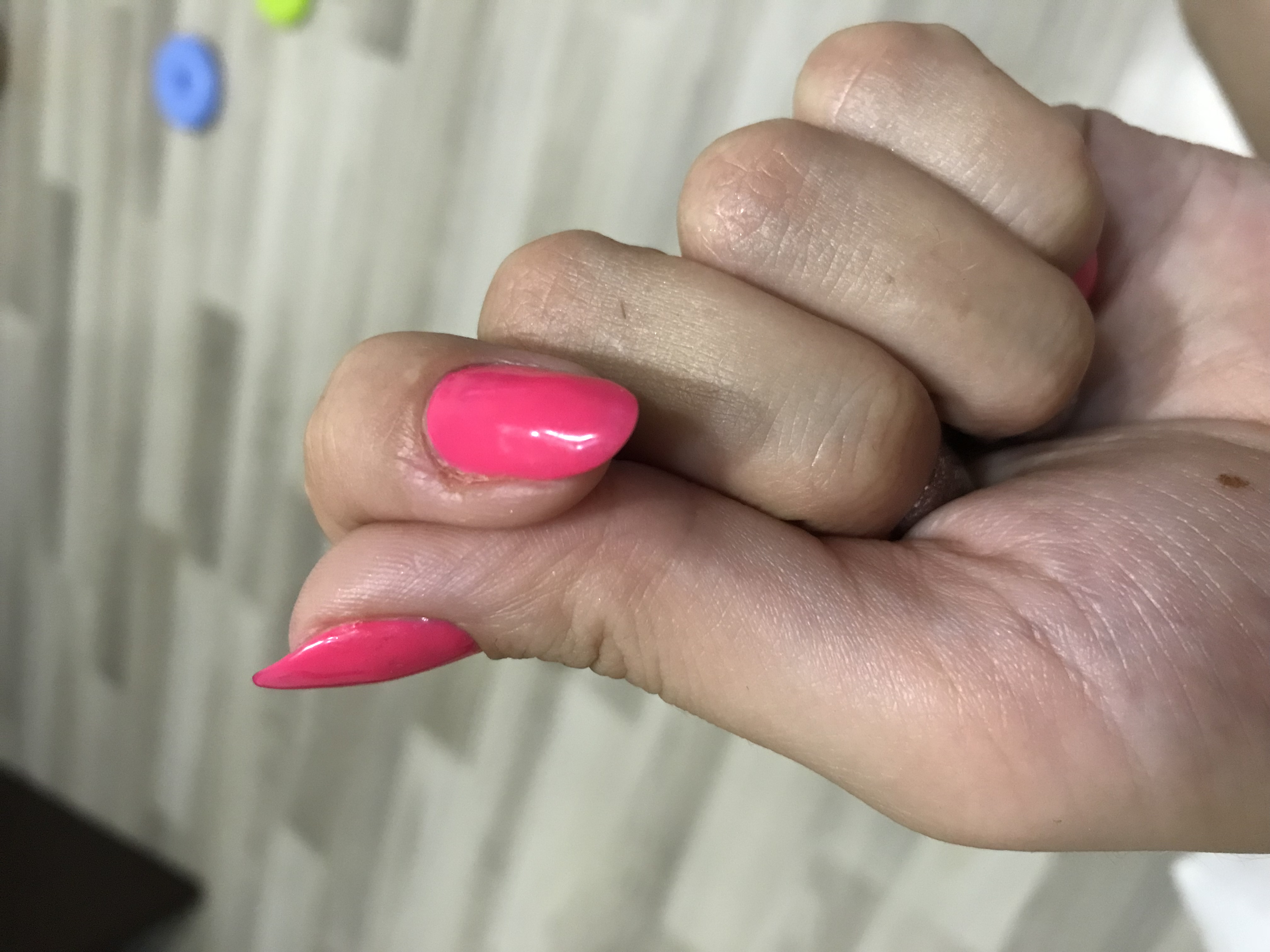 Во- первых, мне длину ногтей откусили кусачками это я вижу в первые (делаю гель лак 4 года и сама занималась) очень неприятная процедура!