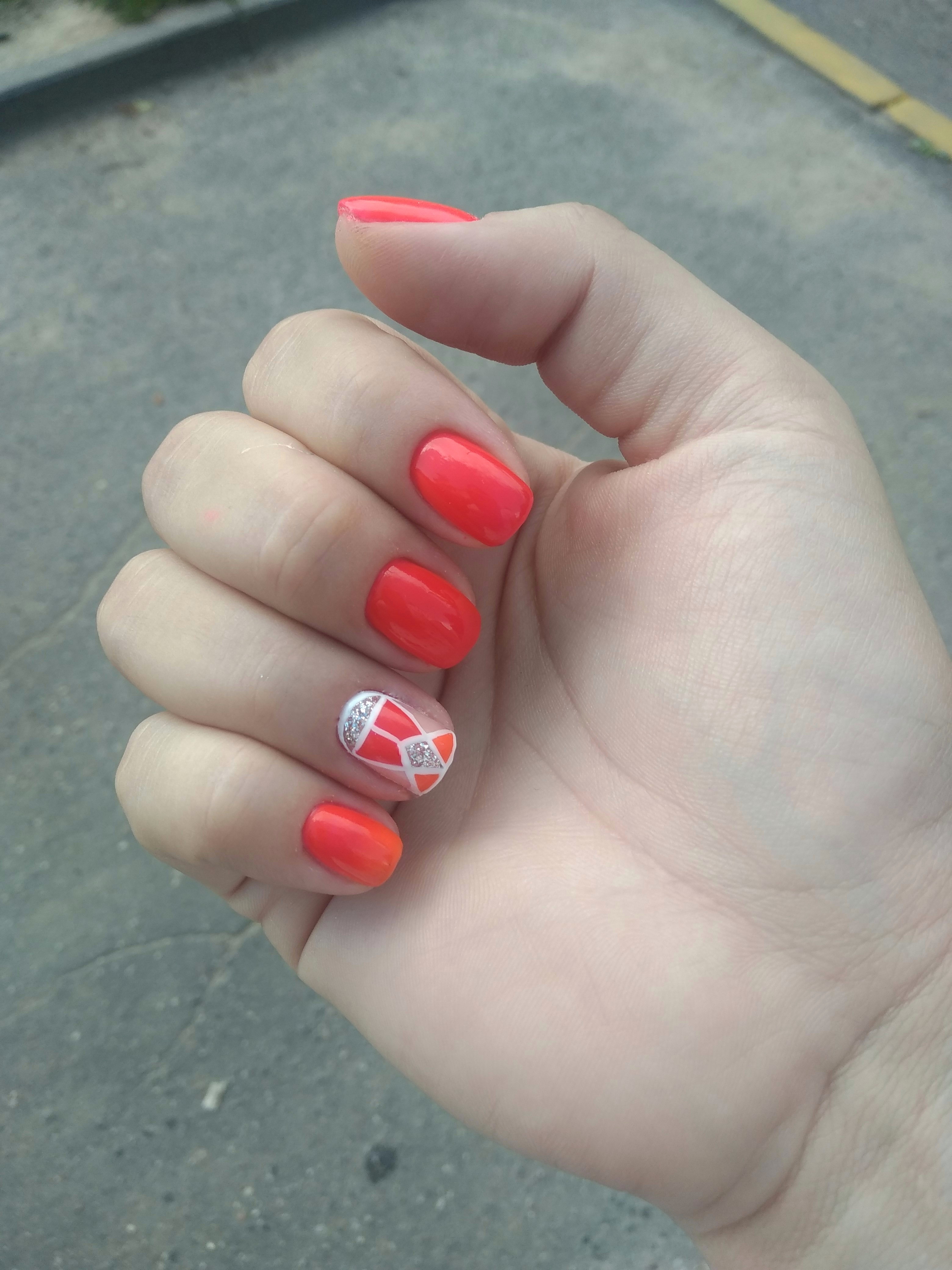 Маникюр делала Александра! Очень и очень приятная мастер!!! Если ногти продержаться, то приду еще обязательно!!! как отращу свои коротышки))) фото прилагаю!