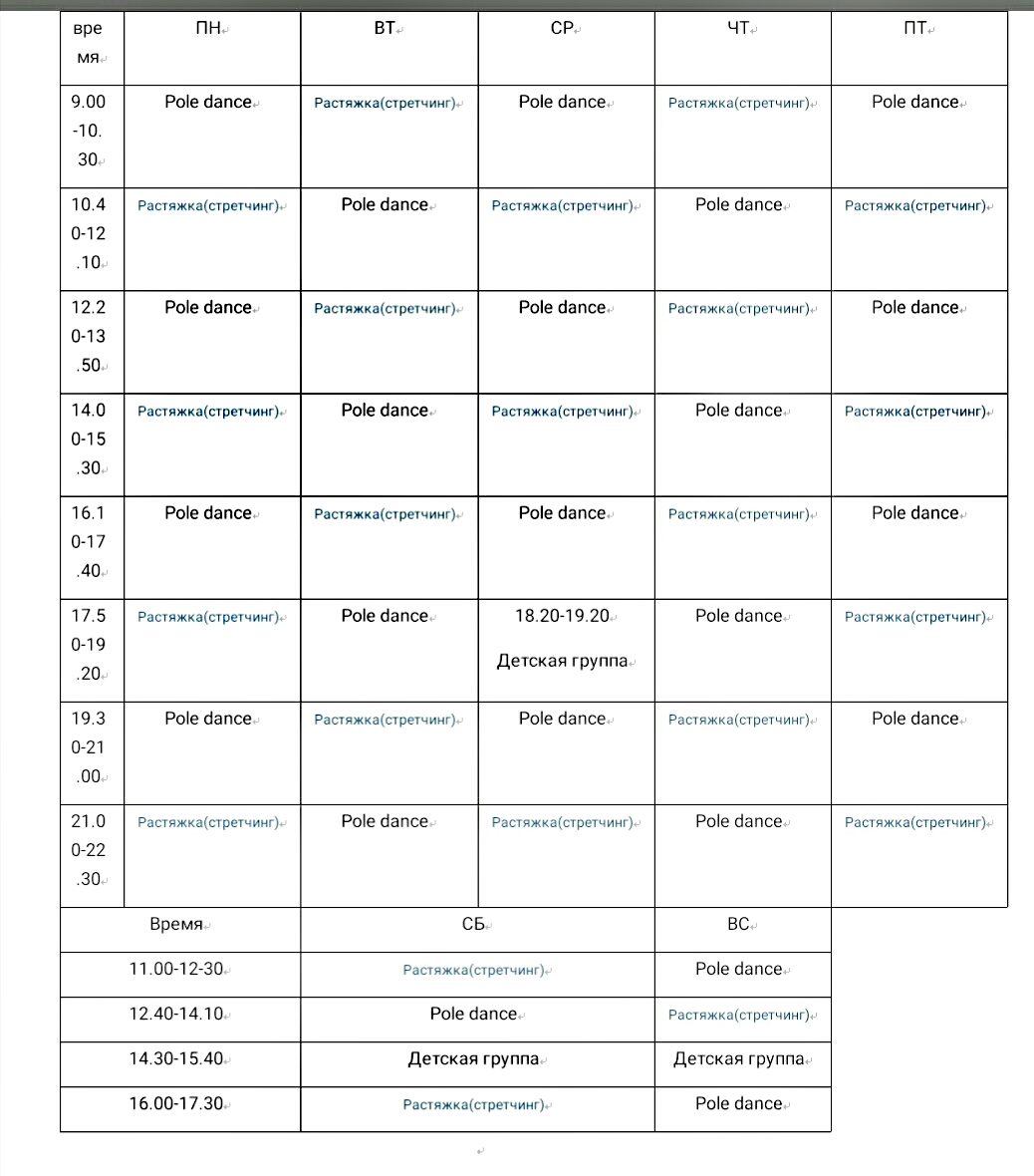 расписание на сайте актуально? интересуют группы по растяжке на утреннее и обеденное время)