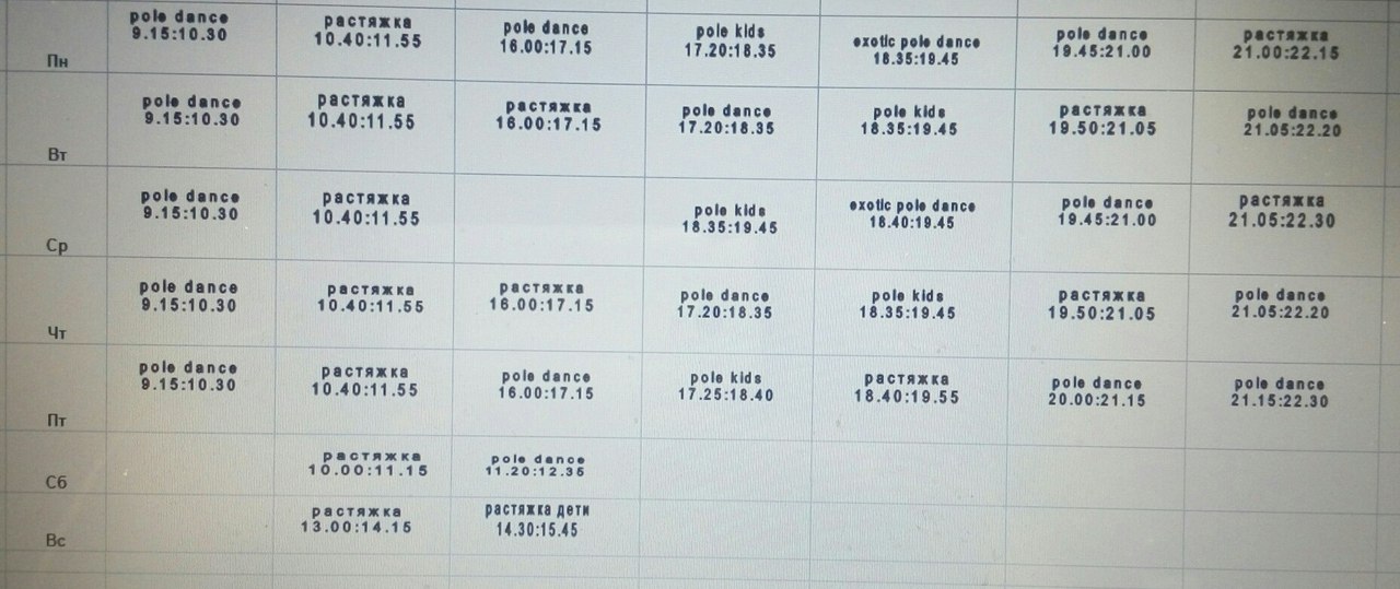 в зале 6 пилонов, в группе максимум 6 человек. Каждый делает свою программу