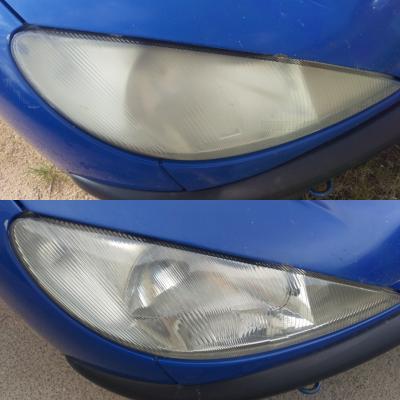 - фары промываются, затем высушиваются. Поверхности автомобиля, прилегающие к фарам, заклеиваются защитной пленкой.
