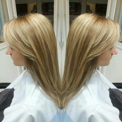 - Комплекс 5: "Мелирование (классическое) + интенсивное увлажнение поврежденных волос + укладка по форме":