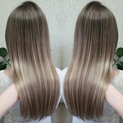- Комплекс 3: "Сложное окрашивание (3D-окрашивание или шатуш) + интенсивное увлажнение поврежденных волос + укладка по форме":