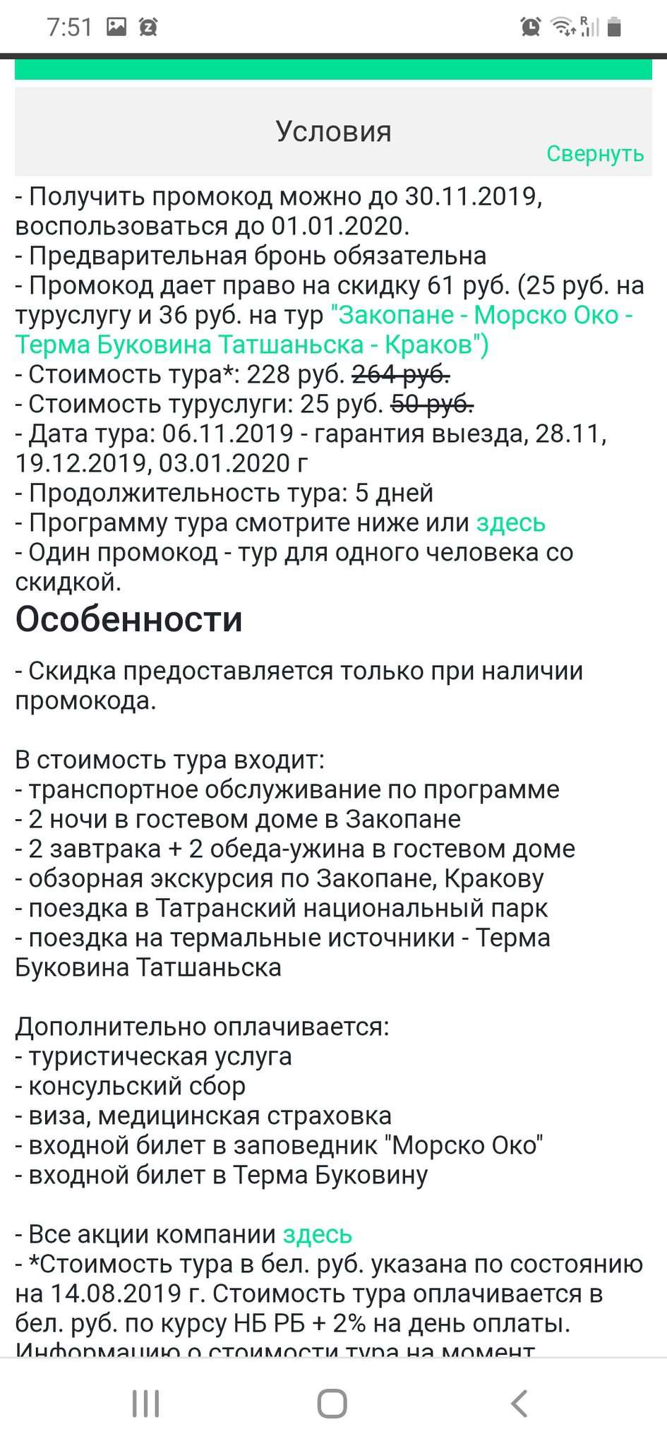 - Промокод дает право на скидку 56 руб. (30 руб. на туруслугу и 26 руб. на тур "Закопане - Морско Око - Терма Буковина Татшаньска - Краков")