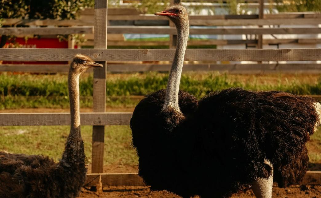 На ферме страусы ведут себя практически так же, как и в дикой природе - бегают друг за другом, кокетливо делают реверансы, причудливо распушают перья и, конечно же, несут яйца. Если Вам посчастливится, то можно увидеть брачные танцы самцов.