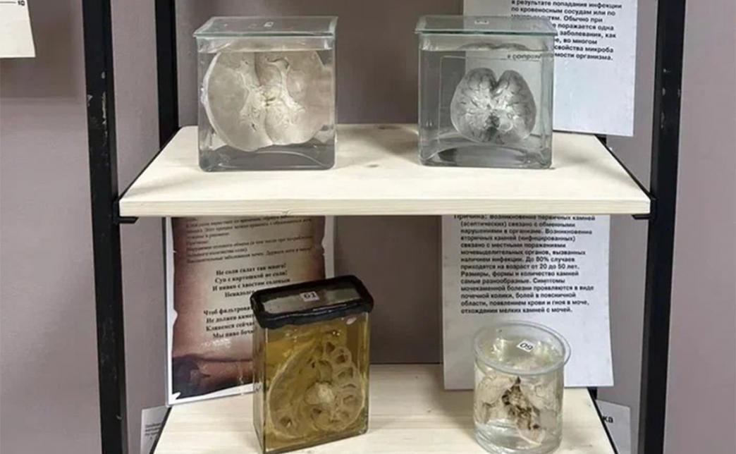 - патология органов человека (наглядные примеры последствий вредных привычек и нарушение развития ), врожденные уродства человека и "шутки природы" в мире животных. Выставка имеет историческую ценность, многие экспонаты связаны с известными историческими личностями и самому старинному из них 263 года, так же выставка имеет анатомическую ценность, будет интересна как наглядный открытый урок по биологии и анатомии для школ и медицинских училищ. А так же, неоценима, как пропаганда здорового образа жизни, ведь у нас можно не только услышать, но и увидеть: печень алкоголика, легкое курильщика и тп.