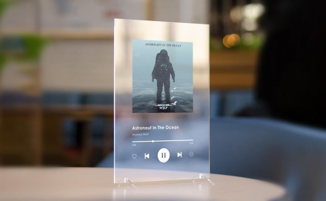 "Sound Glass" - прозрачный постер из прочного органического стекла в стиле плеера "Spotify" с любым вашим изображением/обложкой, треком и исполнителем.
