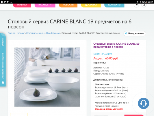 Действительно странная акция, на сайте интернет-магазина Столовый сервиз CARINE BLANC 19 предметов на 6 персон стоит 60 руб., а с учетом промокода на сливках будет стоить 60 руб 50 коп. . в чем прикол? скриншот с сайта от 18.12.2017 прикрепляю.