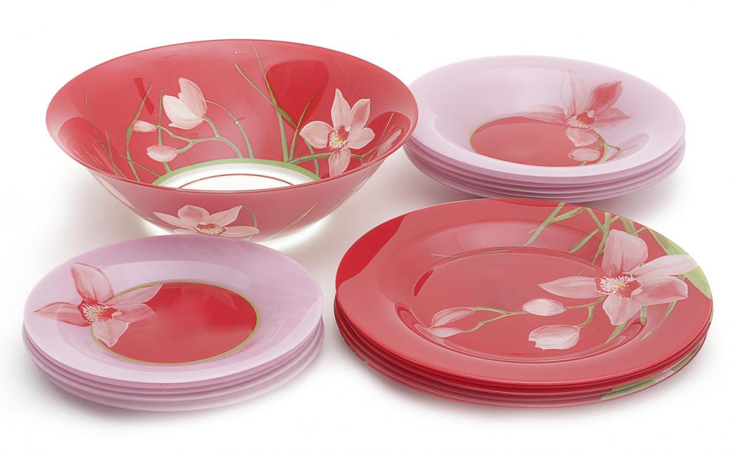 - тарелка десертная черная 21,5 см (6 шт.) - тарелка обеденная белая 26 см (6 шт.) - тарелка глубокая белая 20 см (6 шт.) - салатник большой черный 24 см (1 шт.)