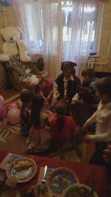 - битва с морскими слонами - тест на профпригодность - "Жадный пират" - пиратская рыбалка настоящими удочками - пиратская рулетка с мокрой бомбой - сражение с чудовищем - шоу огромных и огненных мыльных пузырей - вынос торта - задувание магических свечей. |