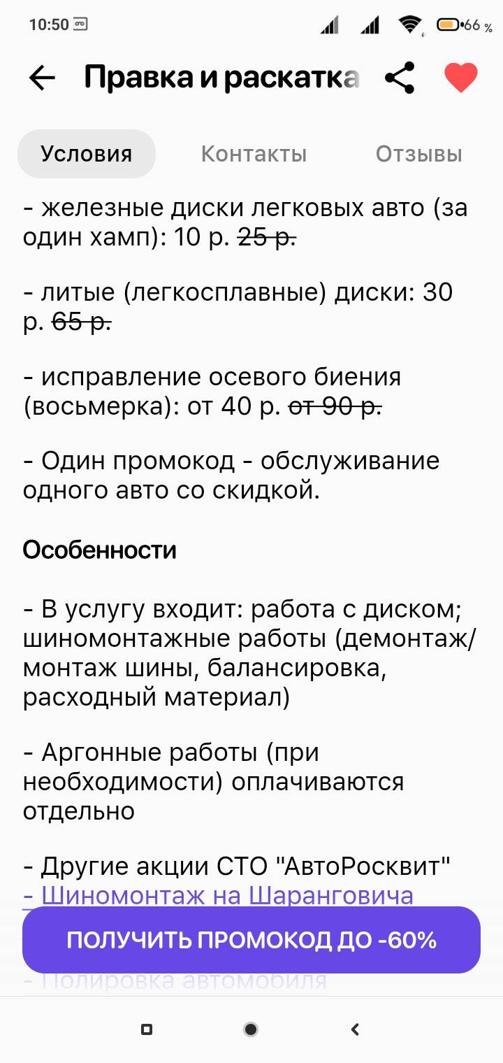 - Услуга оказывается только после предъявления промокода! Если промокод предъявляется после оказания услуги, то расчёт идёт на общих основаниях согласно действующему прейскуранту цен!