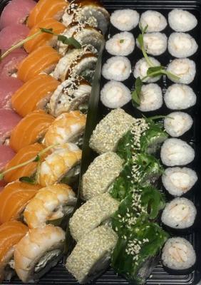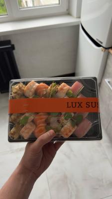 - Промокод дает право на скидку до 60% на премиум суши-сеты и роллы от "LUX SUSHI"