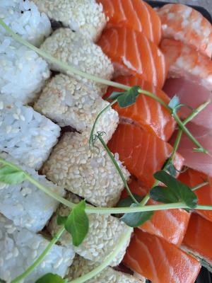 - Промокод дает право на скидку до 60% на премиум суши-сеты и роллы от "LUX SUSHI"