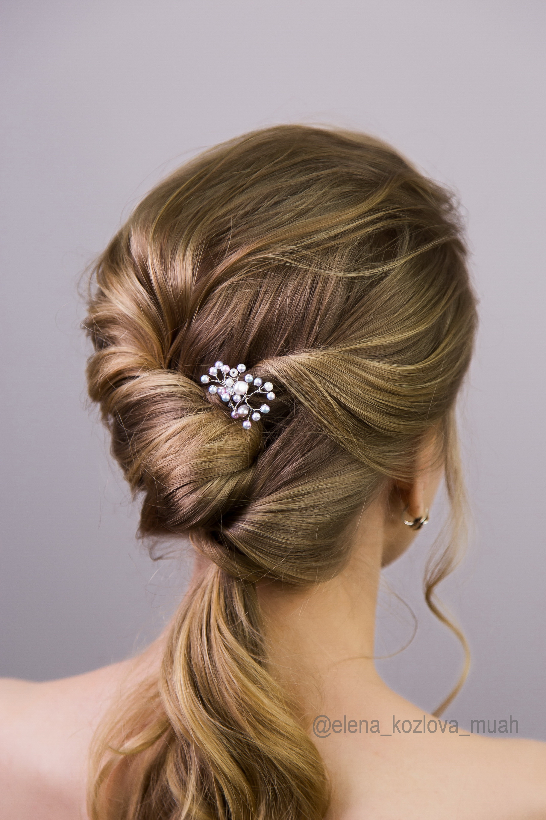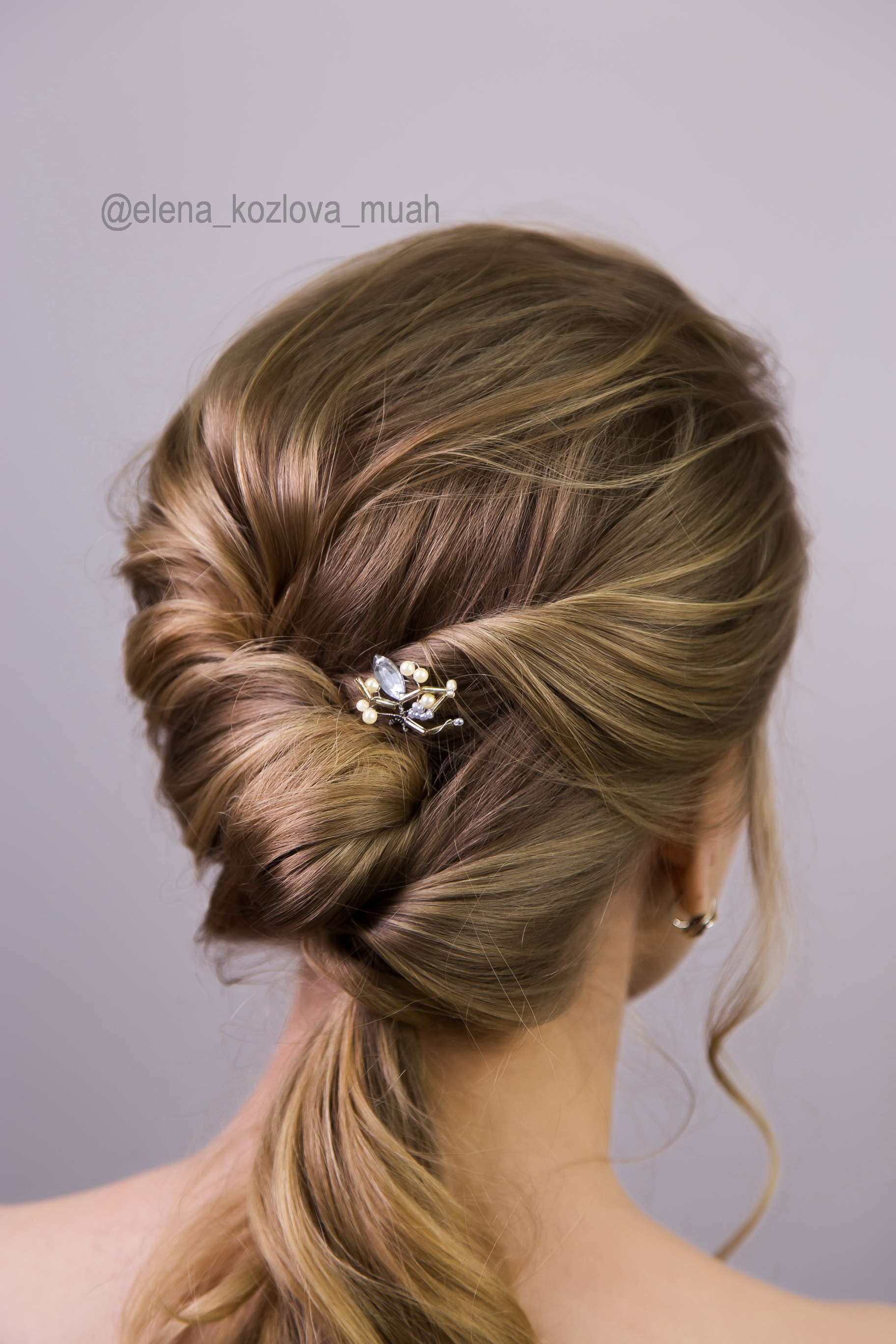00 + 5Воздушный текстурный пучок на основе локонов. Стильные украшения ручной работы на выбор.